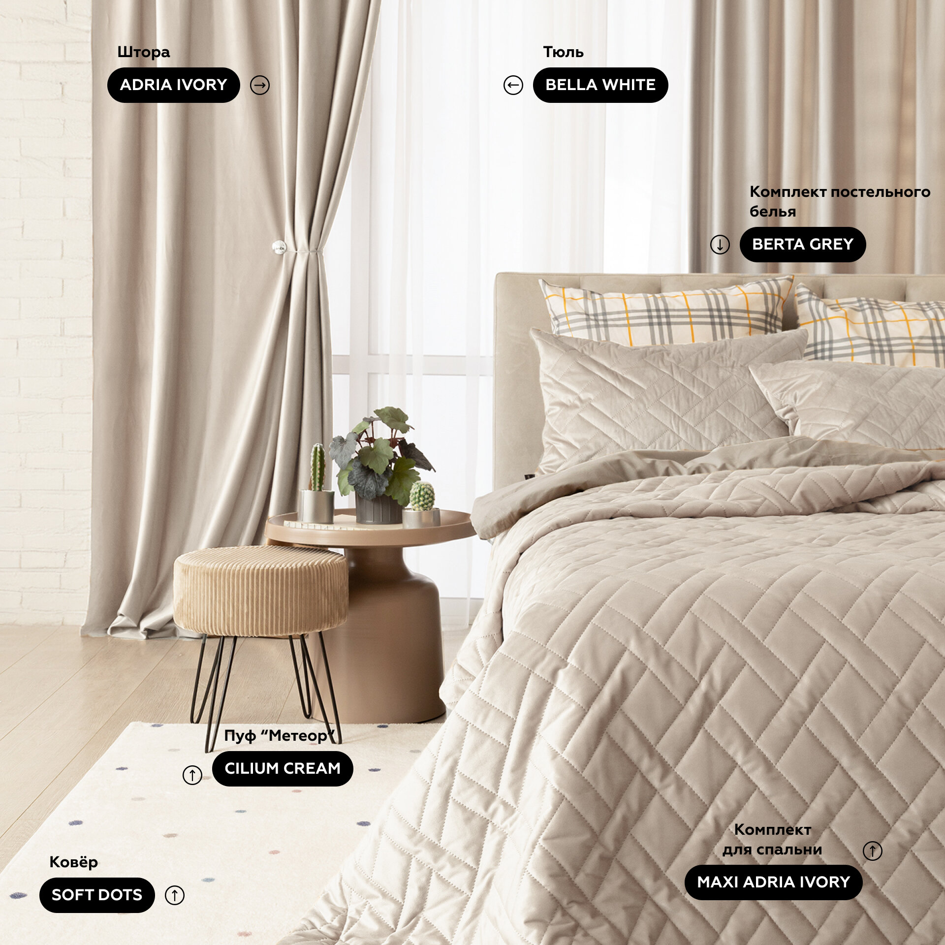 Покрывало на кровать, диван 240х260 см, комплект с наволочками MAXI ADRIA IVORY интересное: