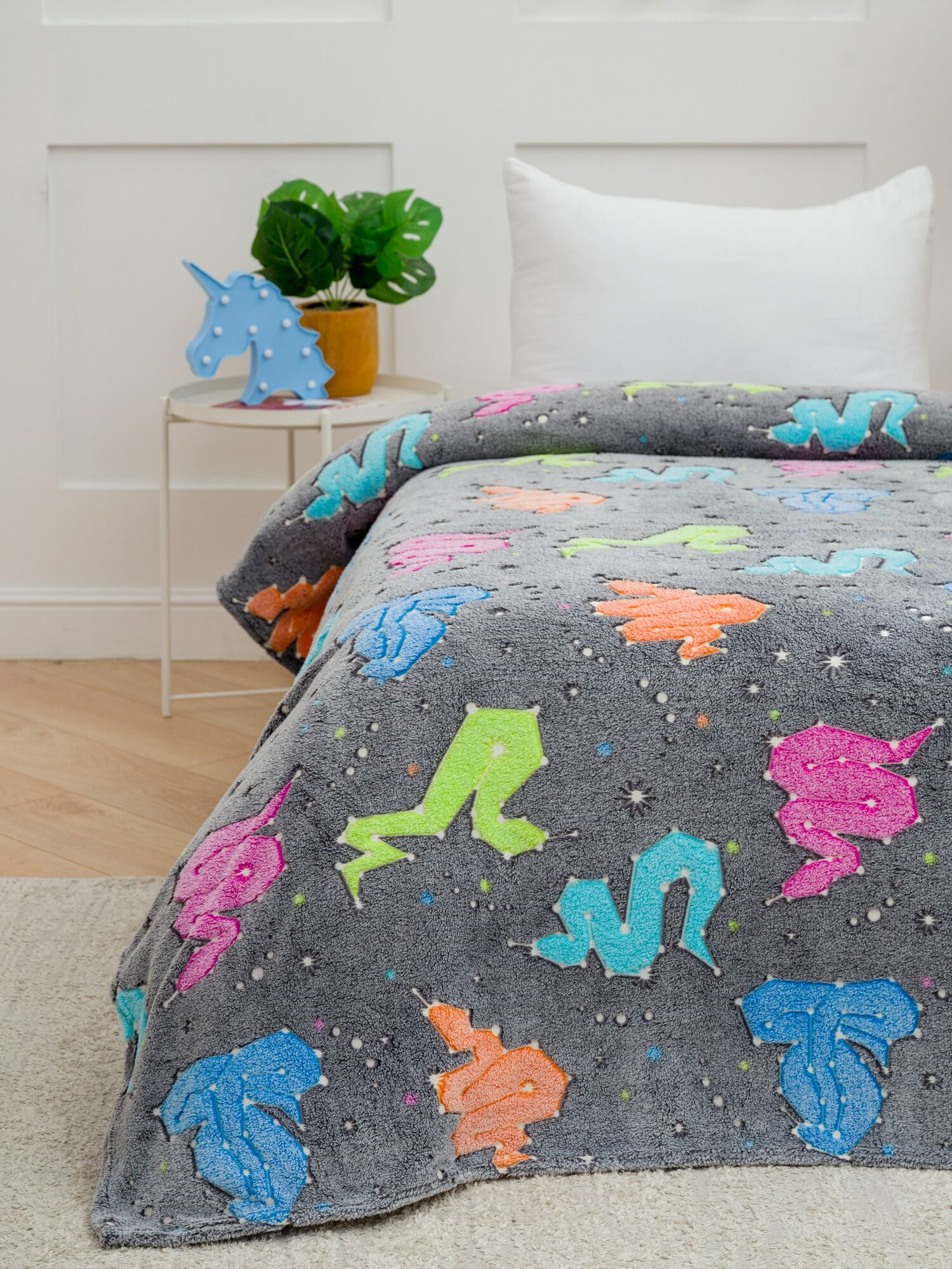 Плед 150х200 Павлина светящийся Разломы серый неон (светонакопитель), 1.5 спальный, полуторный