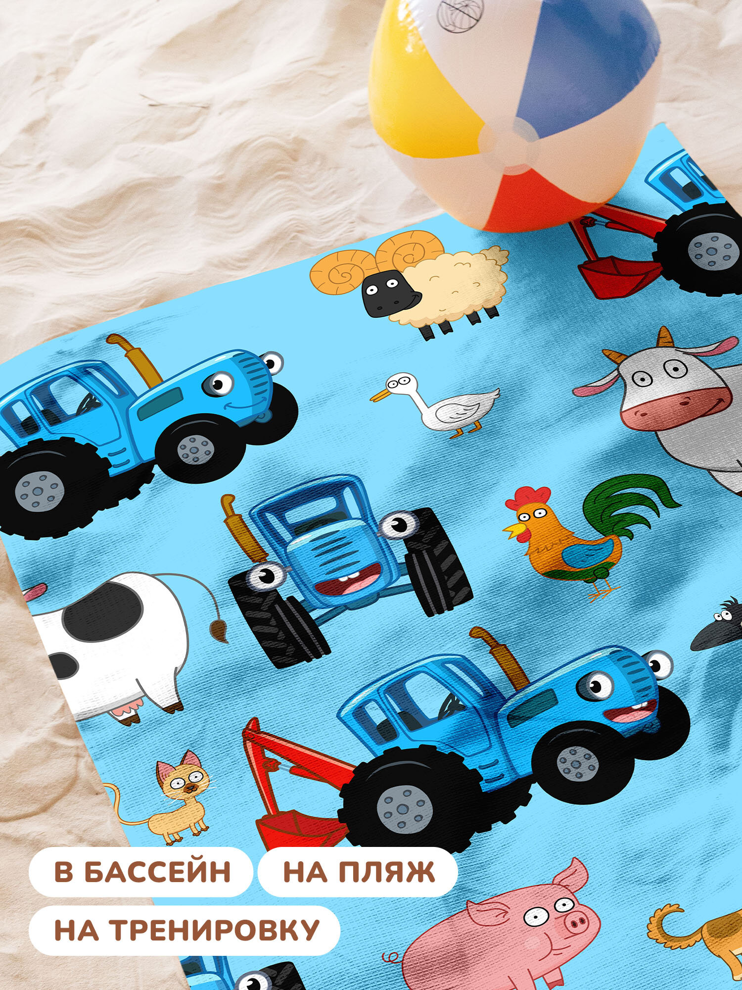 Купить Полотенце пляжное вафельное 75х150 "Непоседа" рис 16439-2 Синий трактор