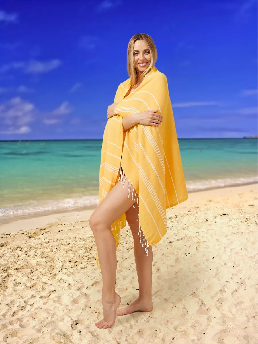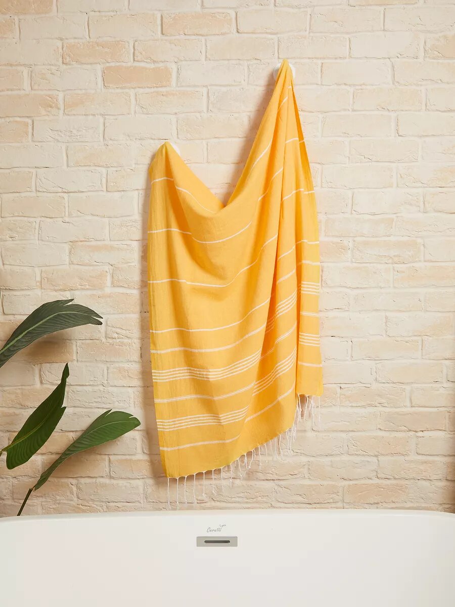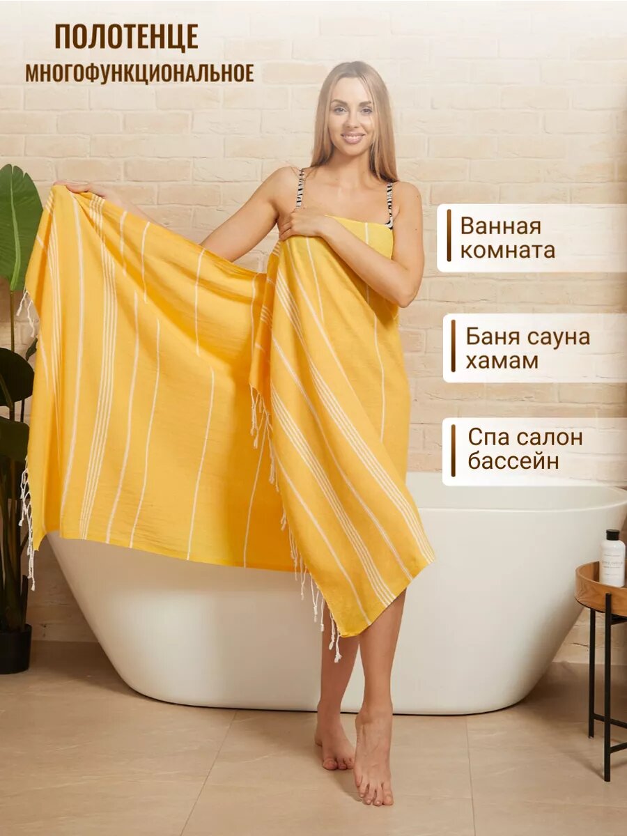 Полотенце банное AtlasPLus пештемаль 90х185 см, пляжное, желтый интересное: