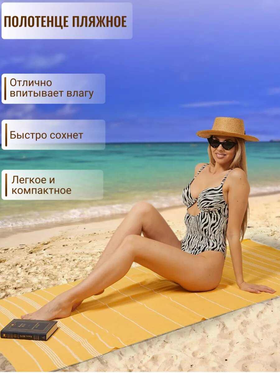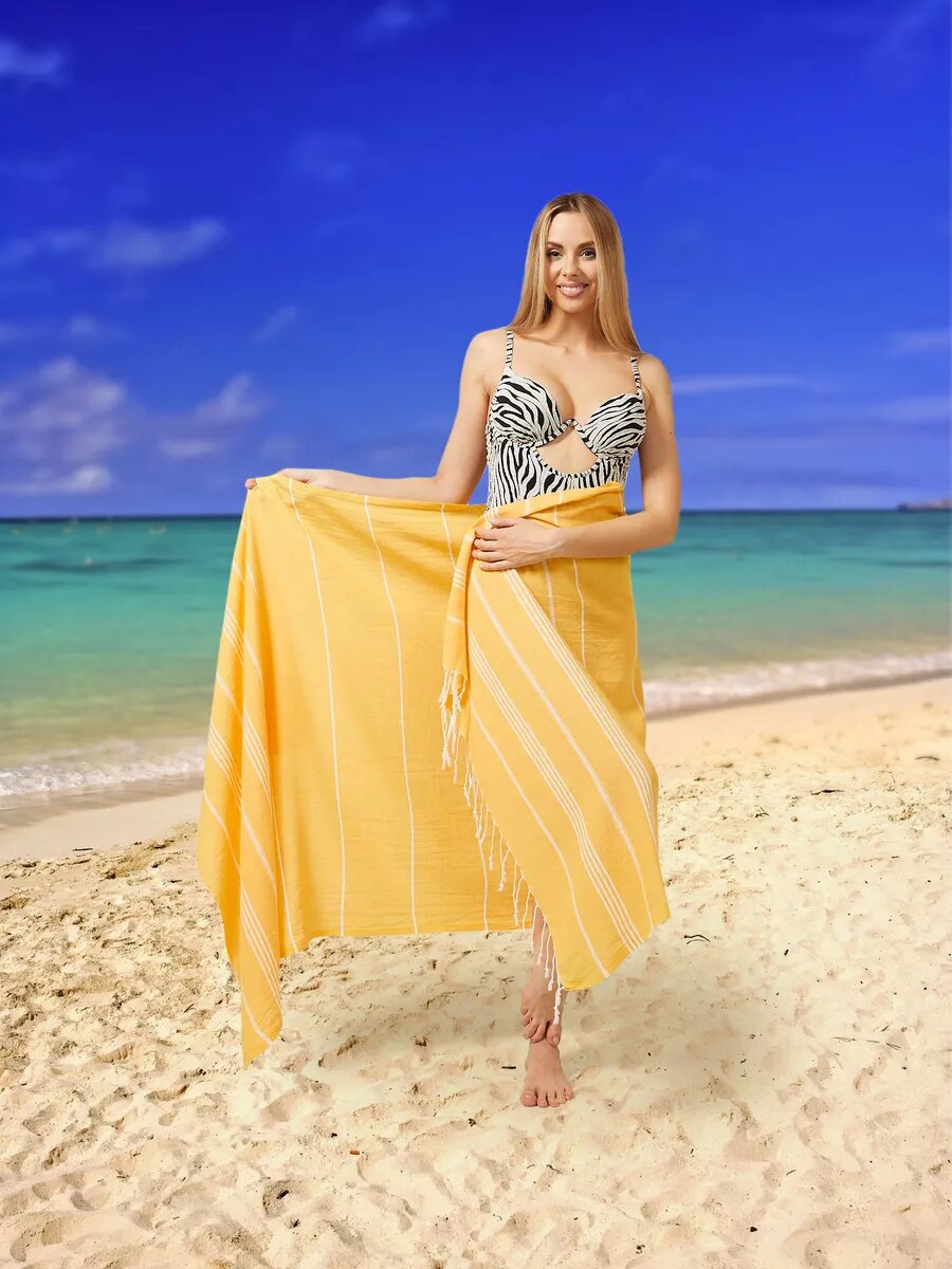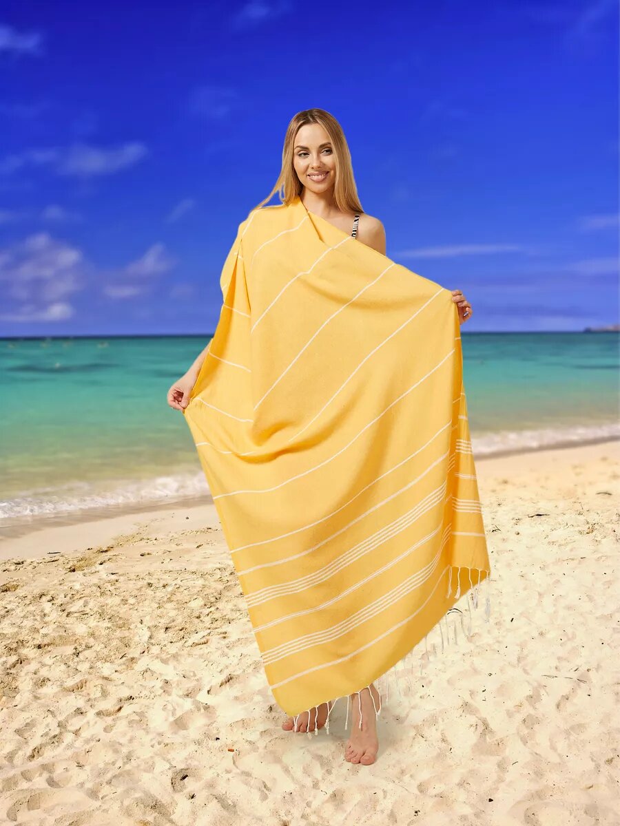 Полотенце банное AtlasPLus пештемаль 90х185 см, пляжное, желтый интересное: