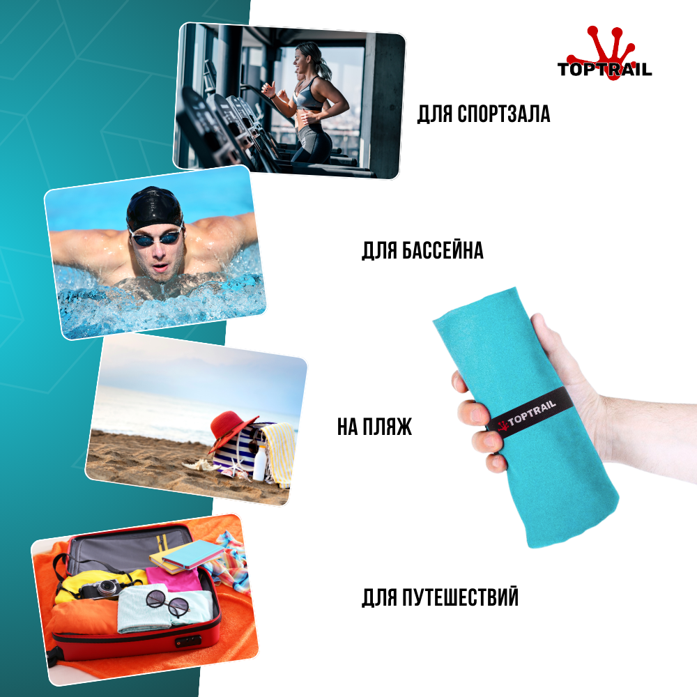 Купить Полотенце спортивное TOPTRAIL, 40x60 см, голубое, из микрофибры, пляжное / для бассейна