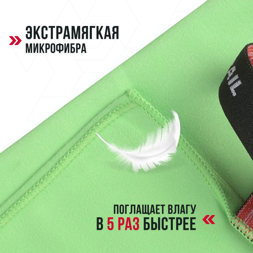 Полотенце спортивное TOPTRAIL, 40x60 см, светло-зеленое, из микрофибры, пляжное / для бассейна интересное:
