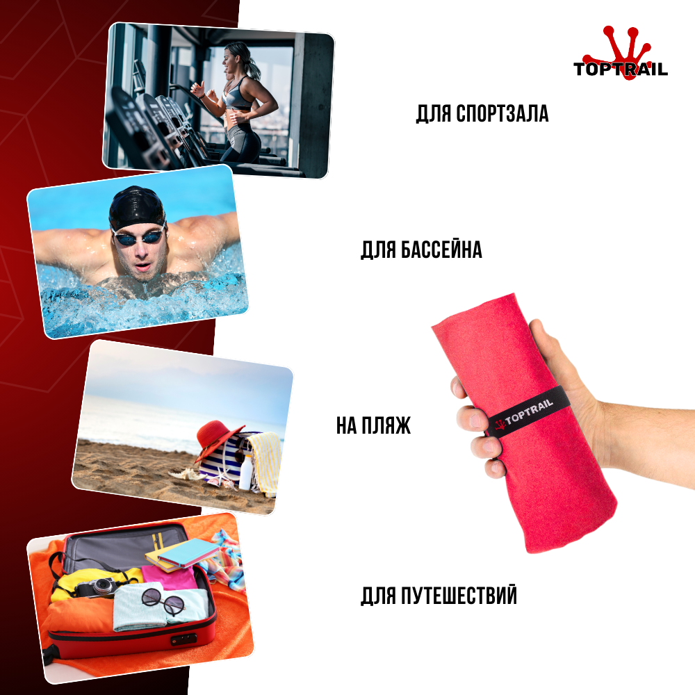Полотенце спортивное TOPTRAIL, 40x60 см, красное, из микрофибры, пляжное / для бассейна интересное: