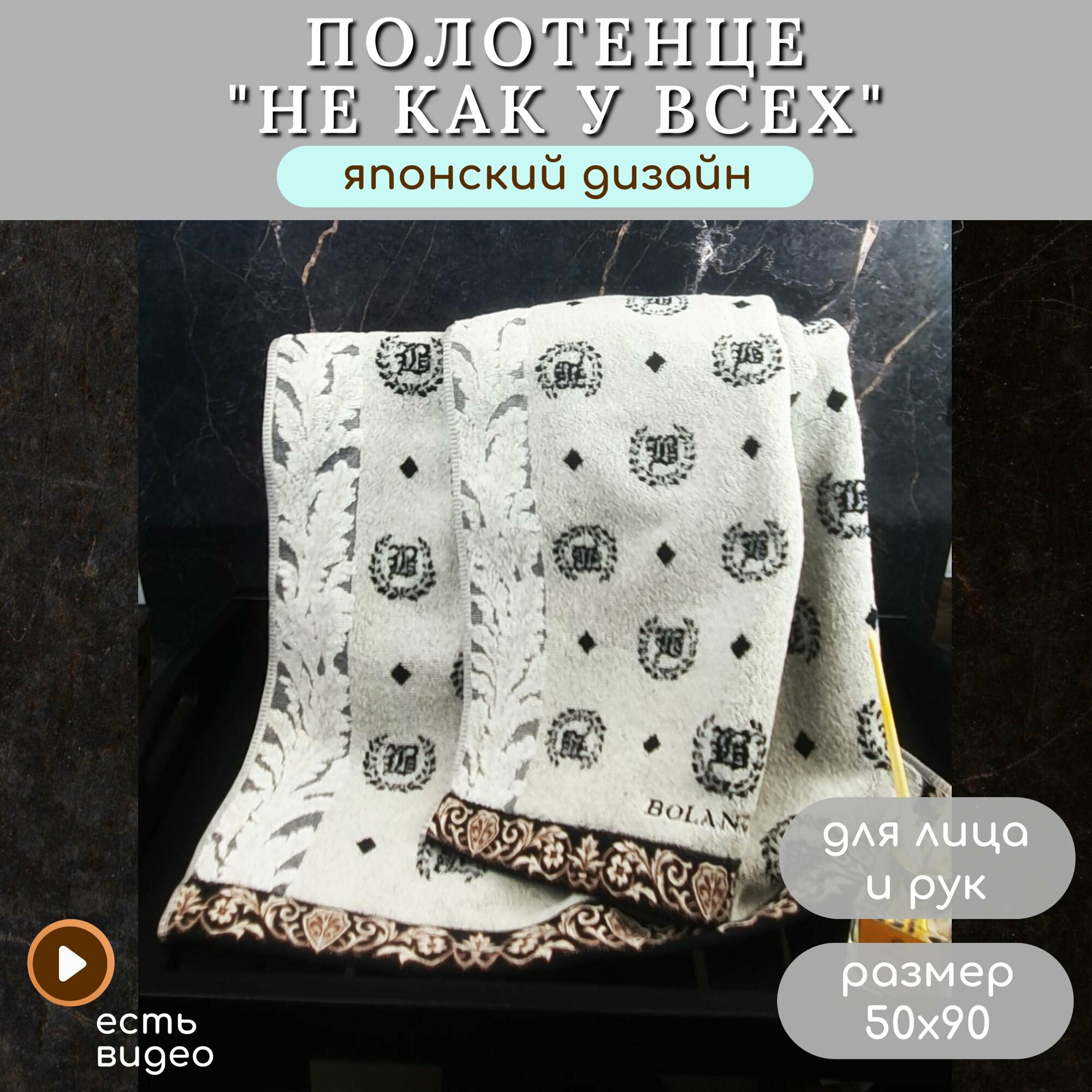 Полотенце для ванной махровое, для лица и рук, велюровое BOLANGDE, 100% хлопок, Япония Лого 50х90, коричневый 1 шт