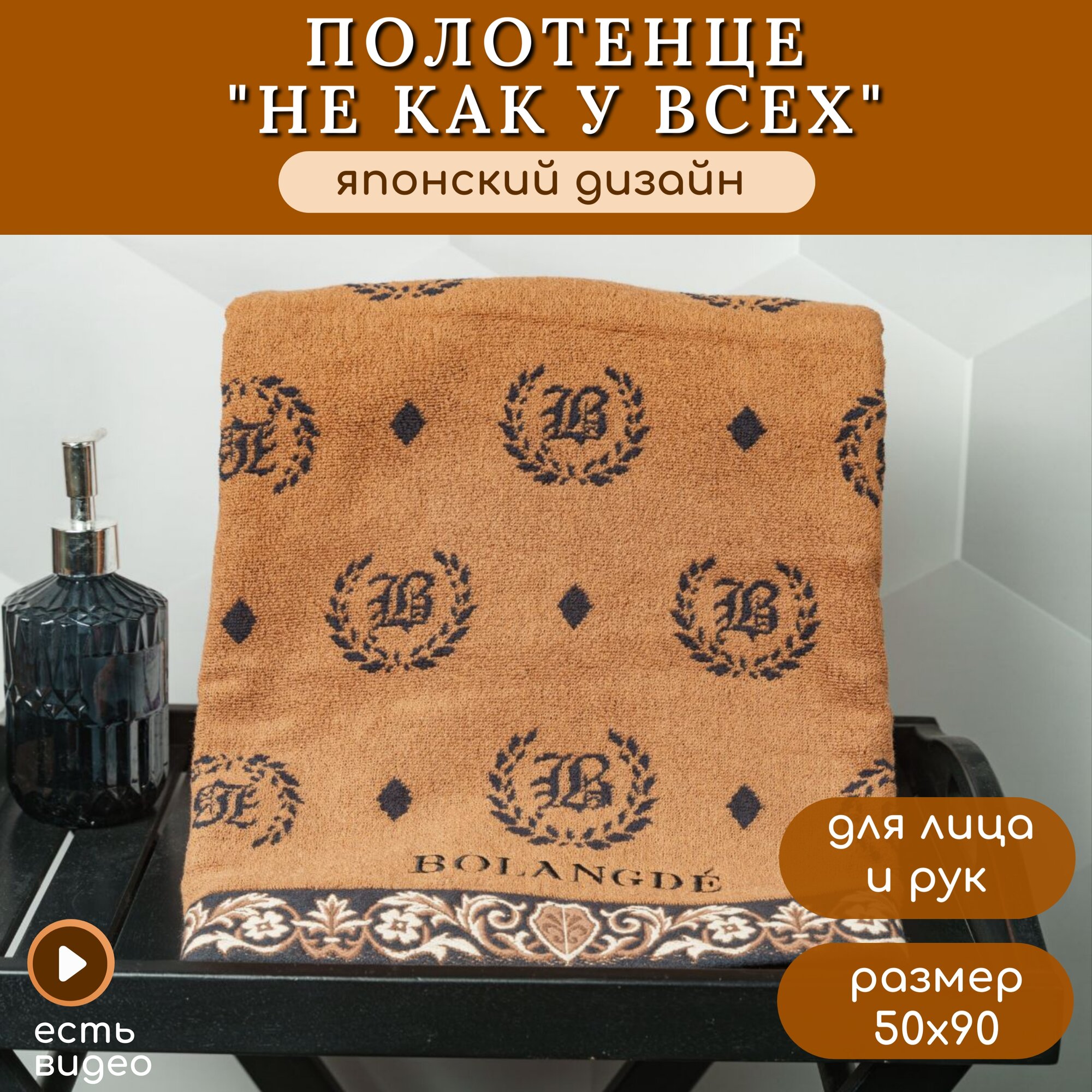 СохранитьПолотенце для ванной махровое, для лица и рук, велюровое BOLANGDE, 100% хлопок, Япония Лого 50х90, коричневый 1 шт интересное: