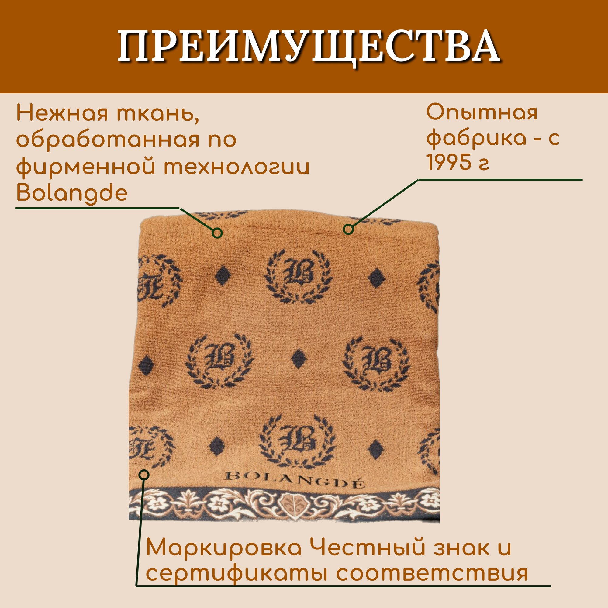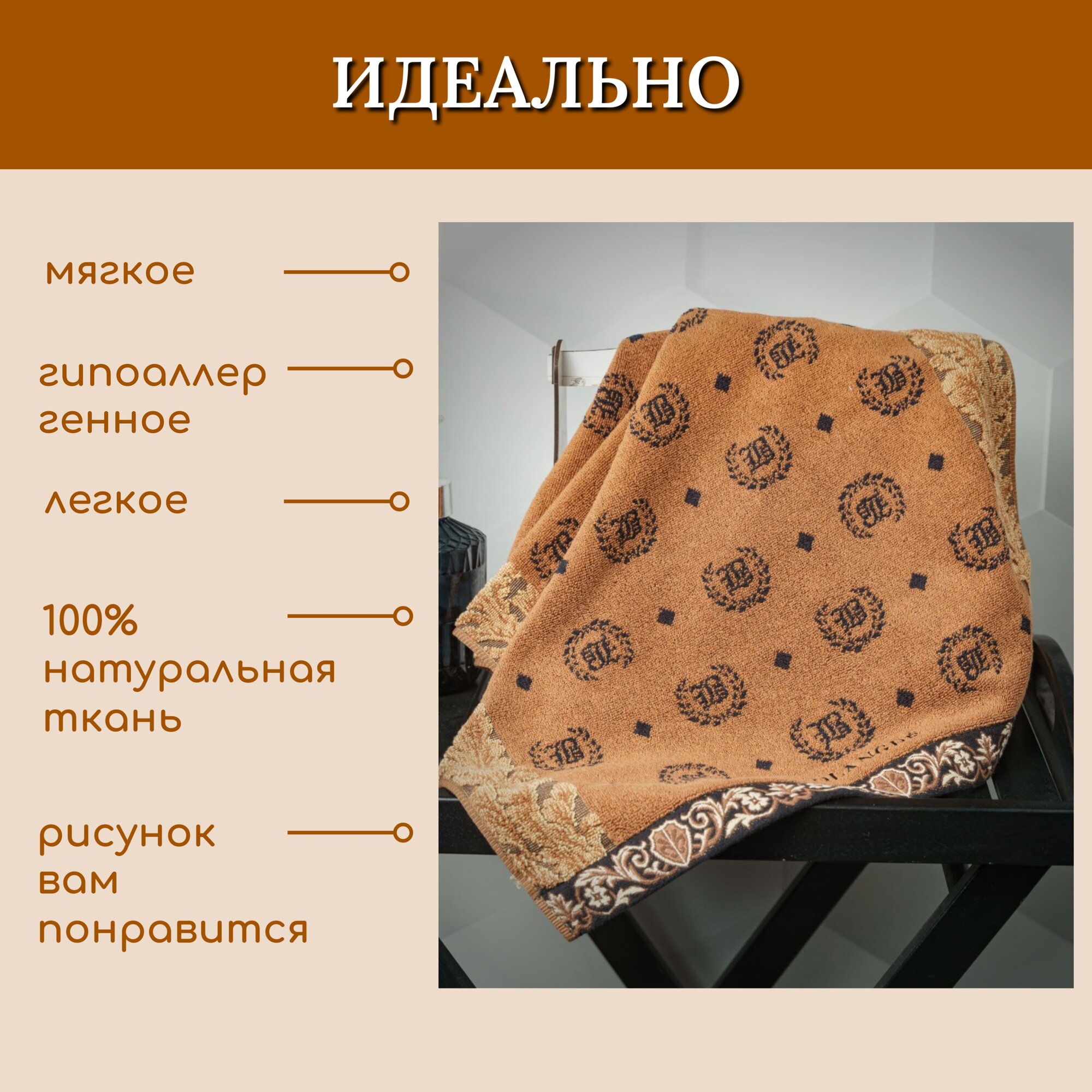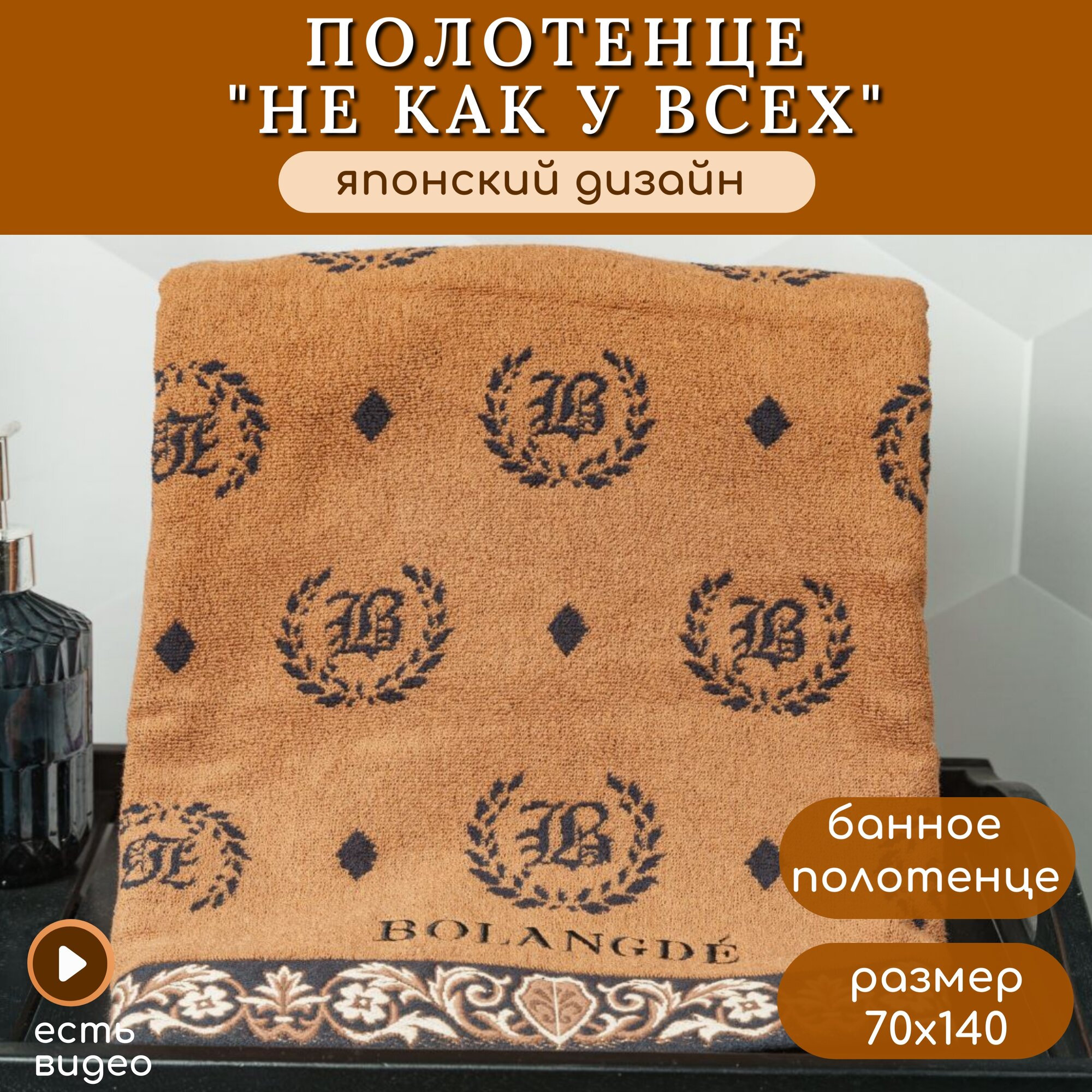 СохранитьПолотенце для ванной махровое банное большое, велюровое BOLANGDE, 100% хлопок, Япония Лого 70х140, коричневый 1 шт. интересное: