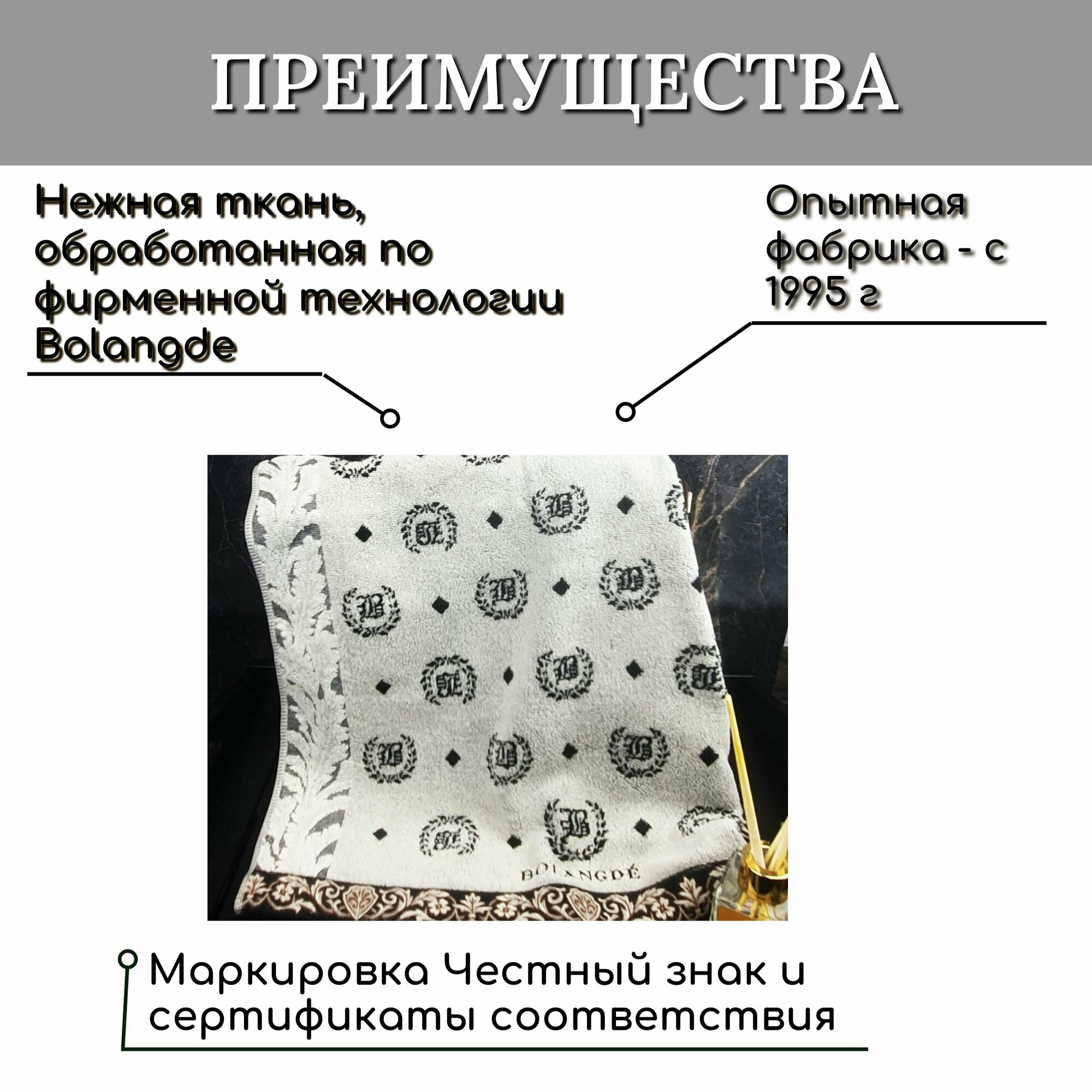 Полотенце для ванной махровое, для лица и рук, велюровое BOLANGDE, 100% хлопок, Япония Лого 50х90, коричневый 1 шт