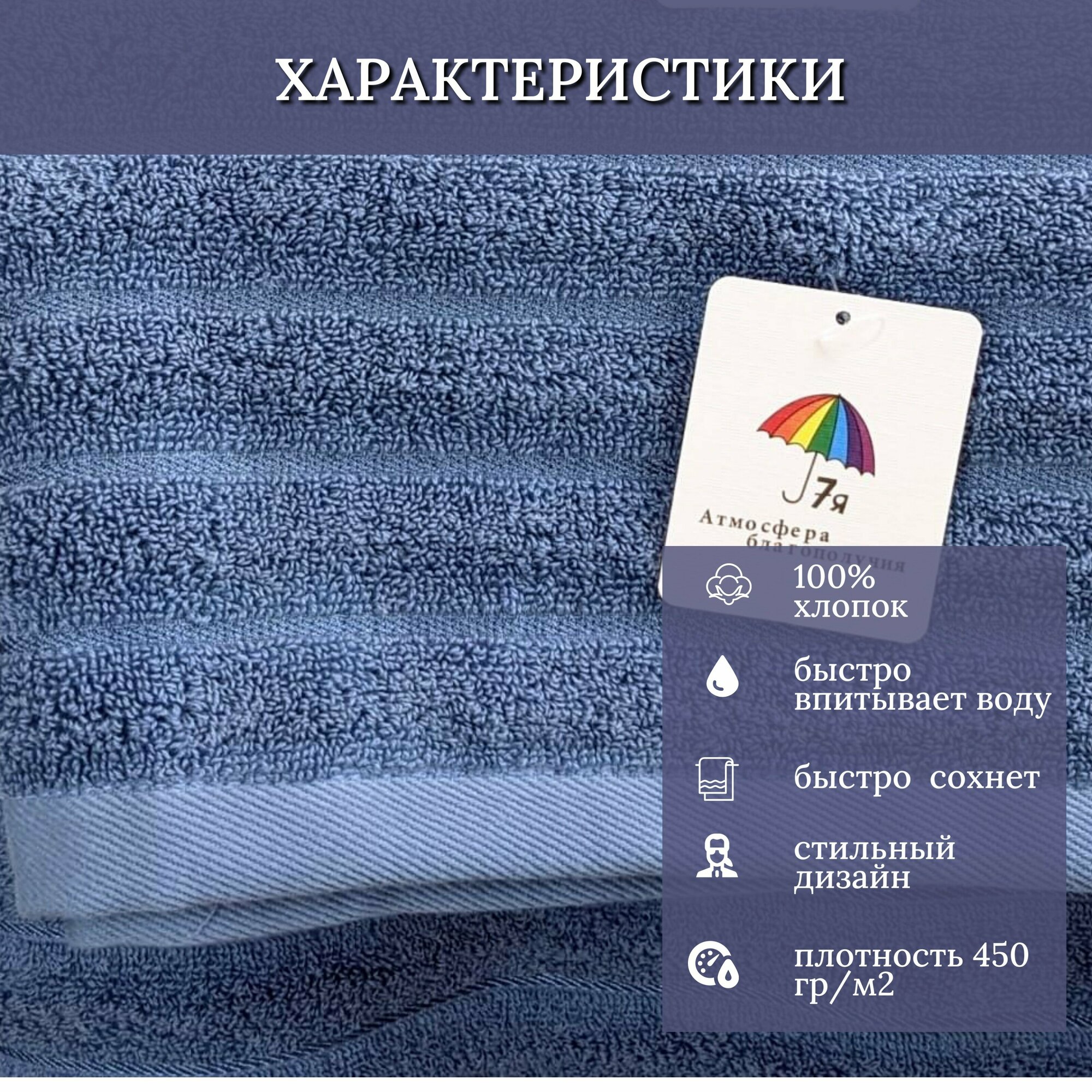 Полотенце банное махровое 70х140 "Фактурная полоса", 7Я текстиль арт. 1506255-синий