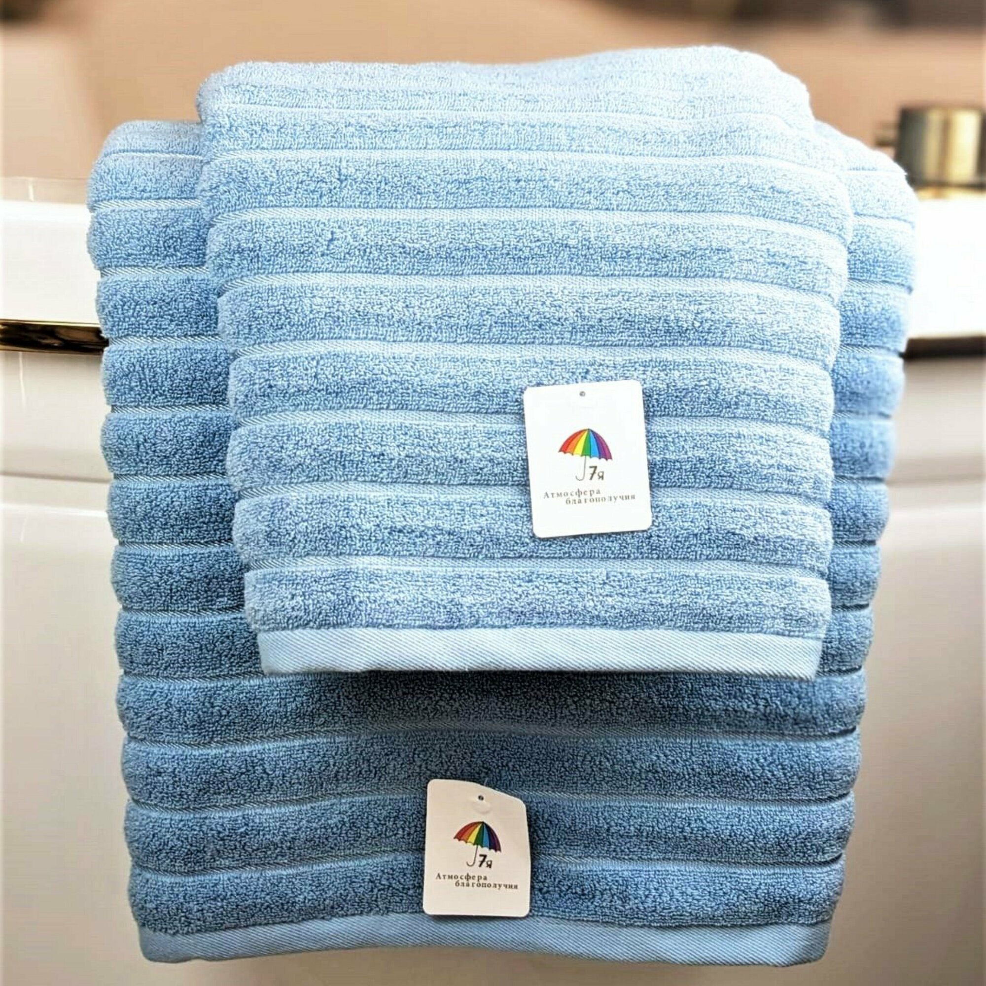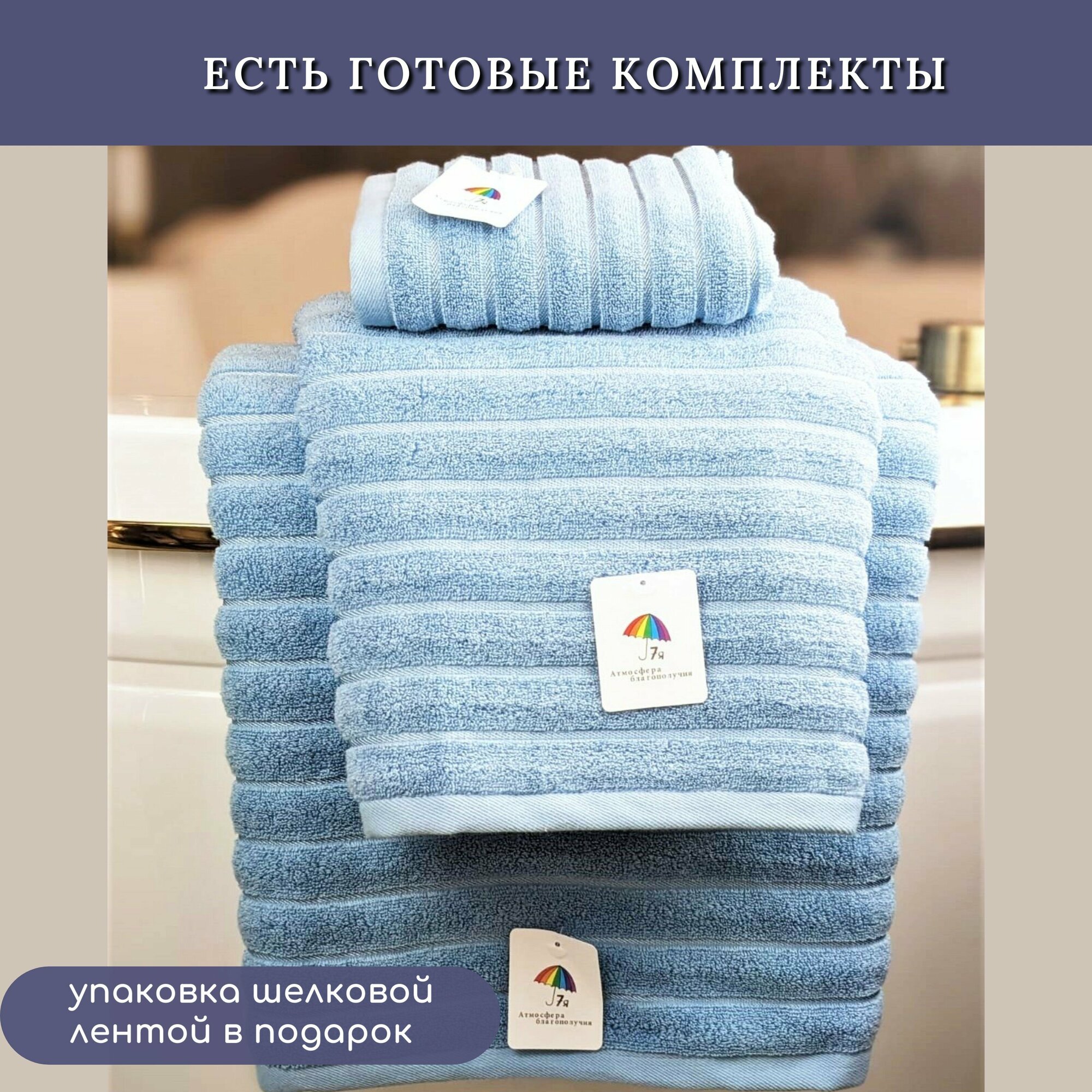 СохранитьПолотенце банное махровое 70х140 "Фактурная полоса", 7Я текстиль арт. 1506255-светло-голубой интересное: