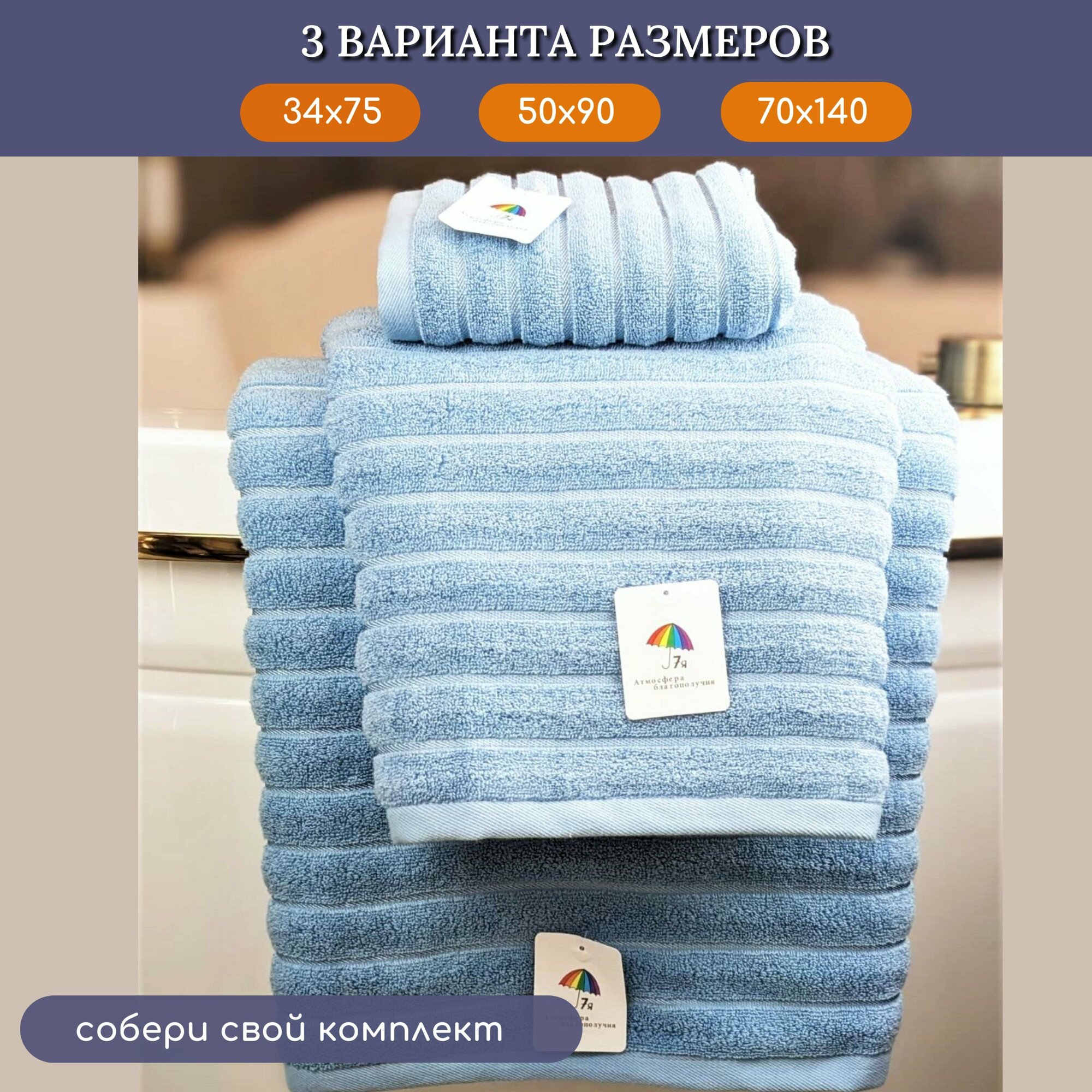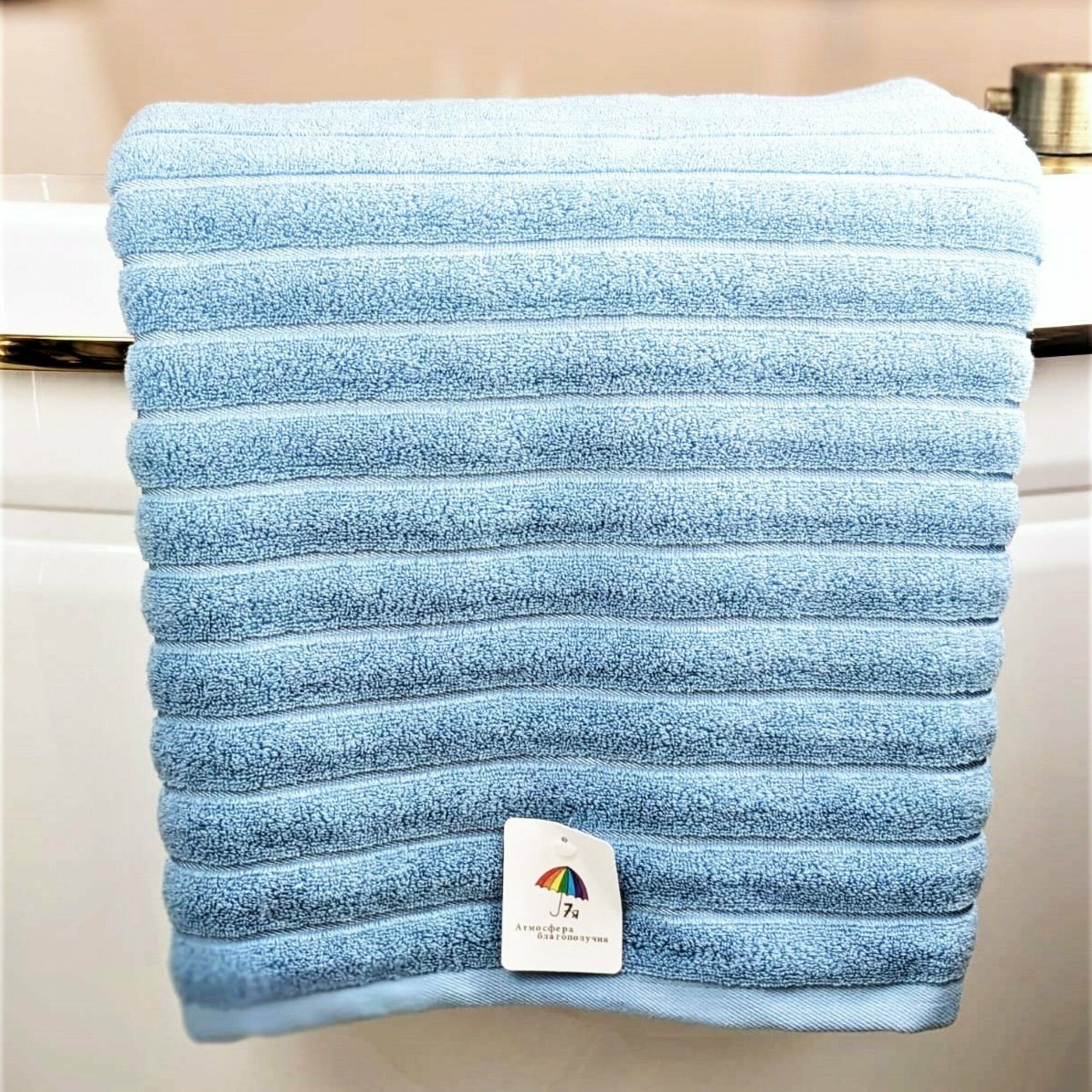 Купить Полотенце банное махровое 70х140 "Фактурная полоса", 7Я текстиль арт. 1506255-светло-голубой