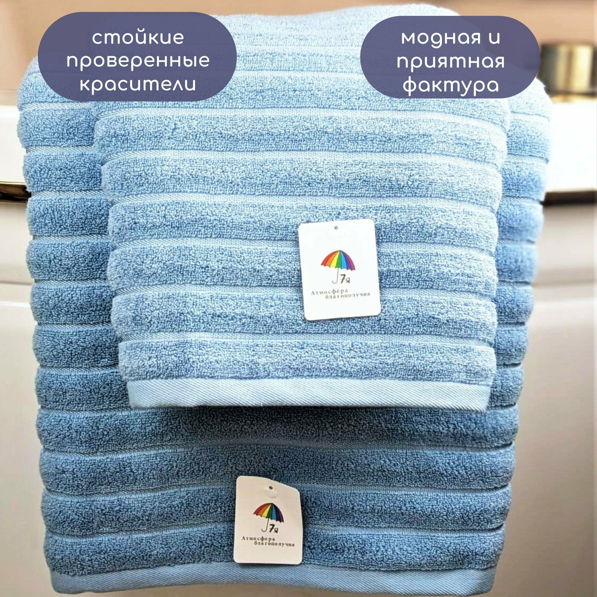 Купить Полотенце махровое для лица 50х90 "Фактурная полоса", 7Я текстиль, арт. 1505255-светло-голубой