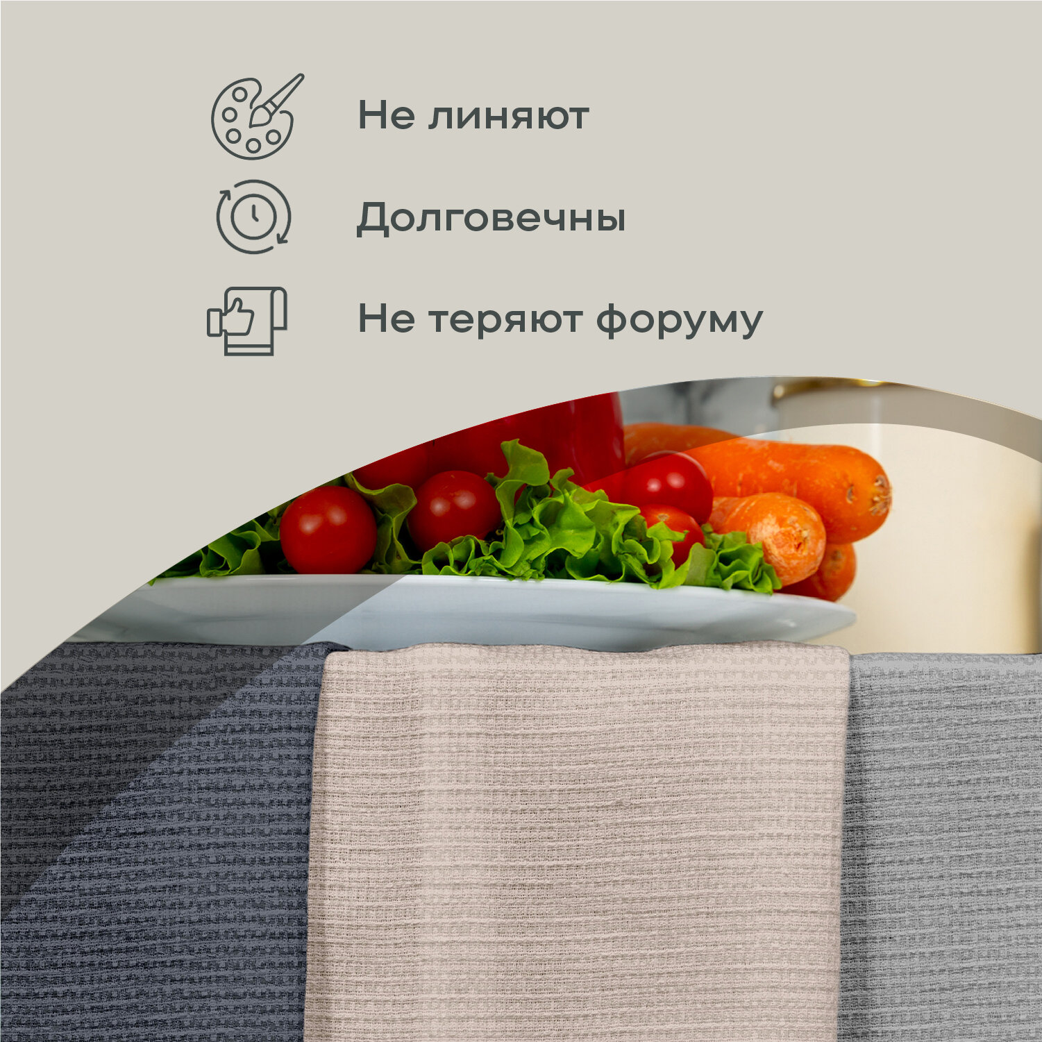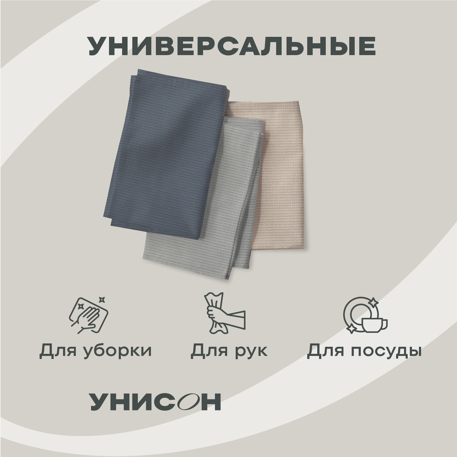Полотенце кухонное 45х60 (3 шт.) "Унисон" рис 30004-10/30004-15/30004-12 Basic графит/бежевый/светло-серый интересное: