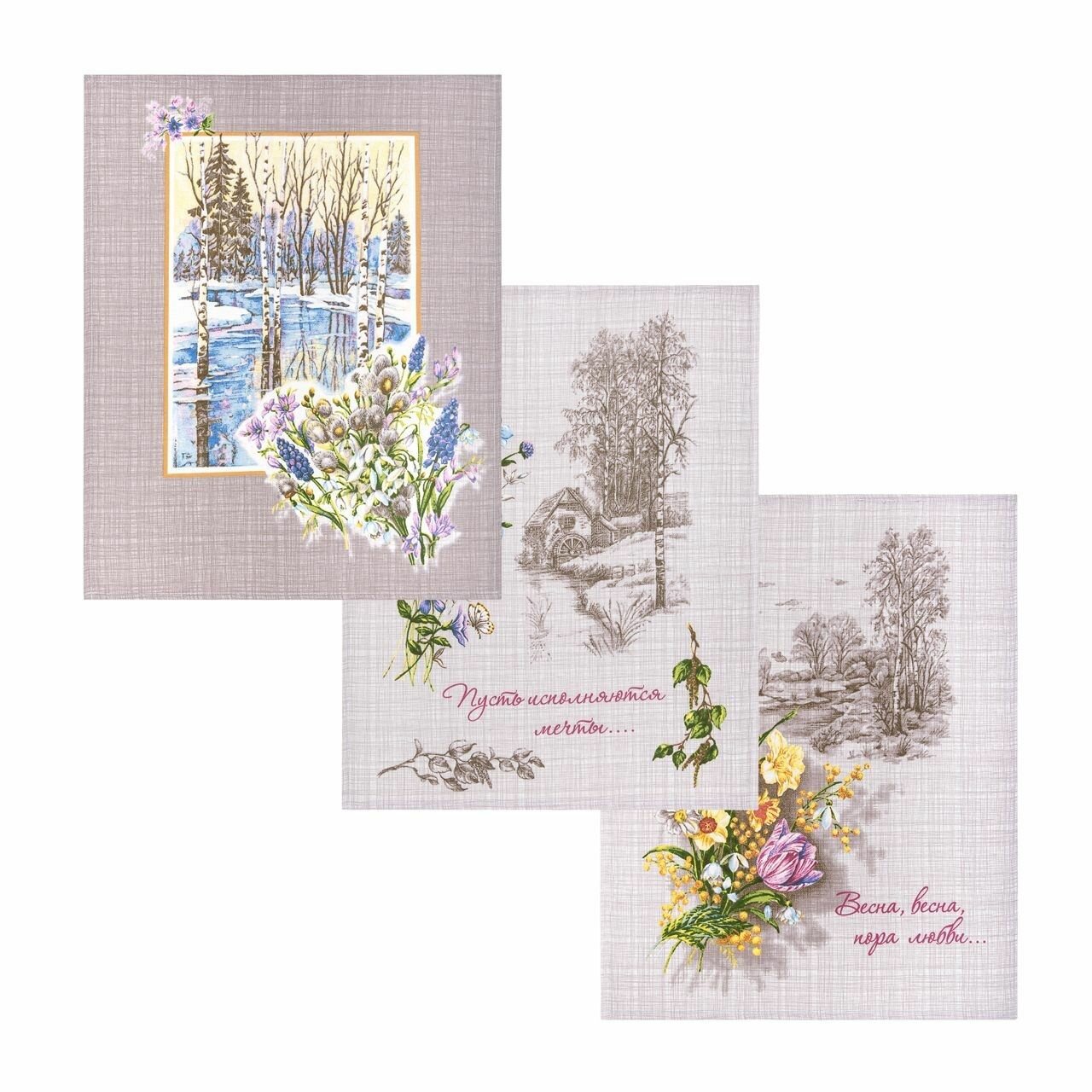 Набор полотенец Этель "Цветочное настроение" 45х70см - 3 шт, репс 167г/м2, хлопок