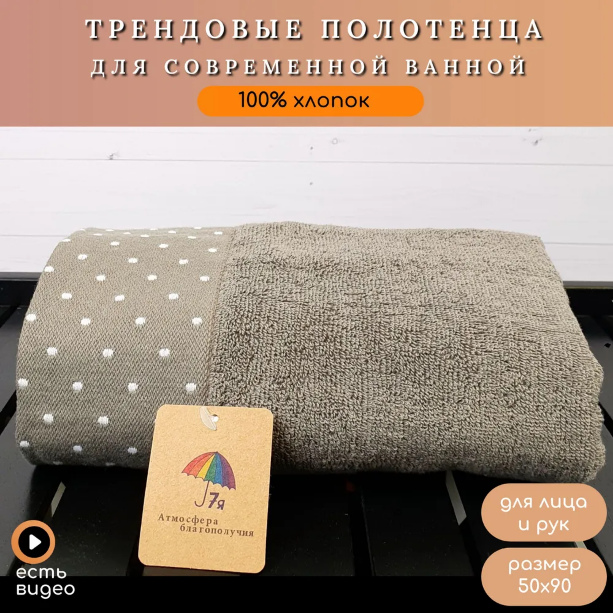 СохранитьПолотенце банное для лица, рук махровое 50х90 см однотонное с бордюром в точечку, хлопок, 7Я текстиль, коричневый интересное: