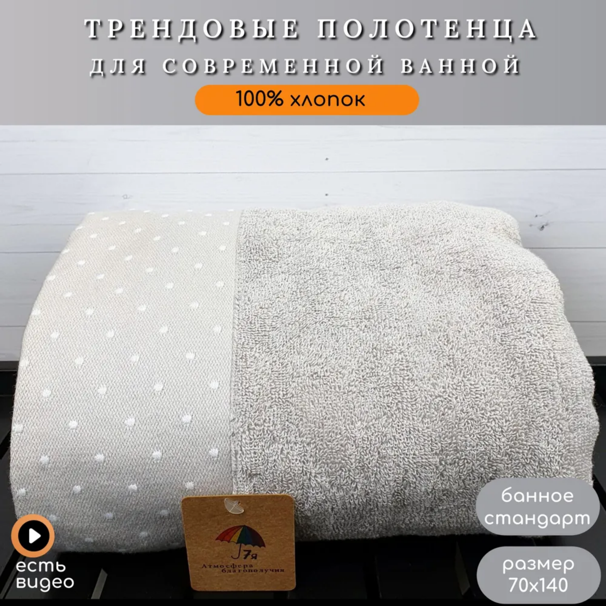 Полотенце банное махровое большое 70х140 см однотонное с бордюром в точечку, хлопок, 7Я текстиль, светло-коричневый