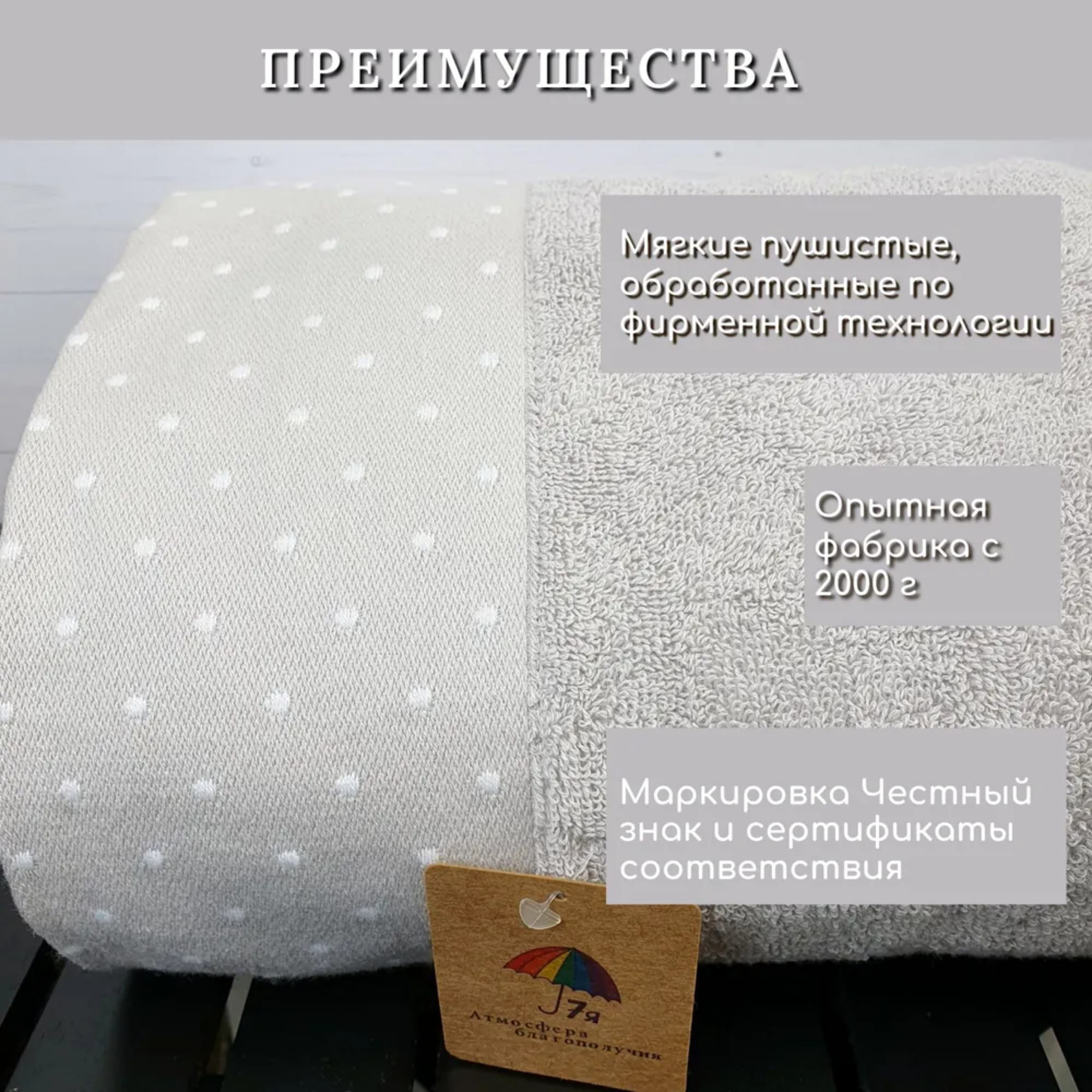 СохранитьПолотенце банное махровое большое 70х140 см однотонное с бордюром в точечку, хлопок, 7Я текстиль, светло-серый интересное: