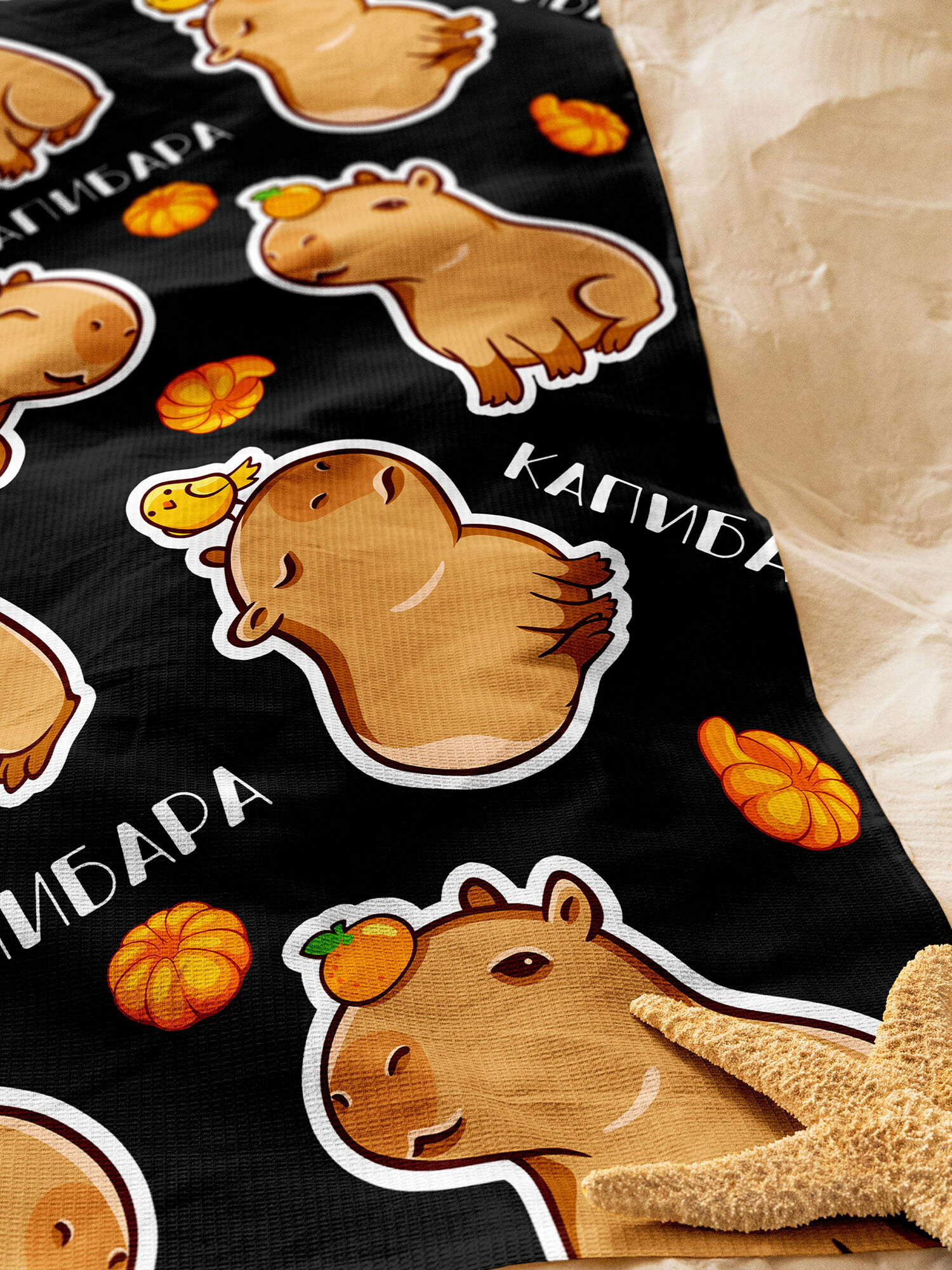 Полотенце пляжное вафельное 70х140 "Crazy Getup" рис 71023-1 Funny capy интересное: