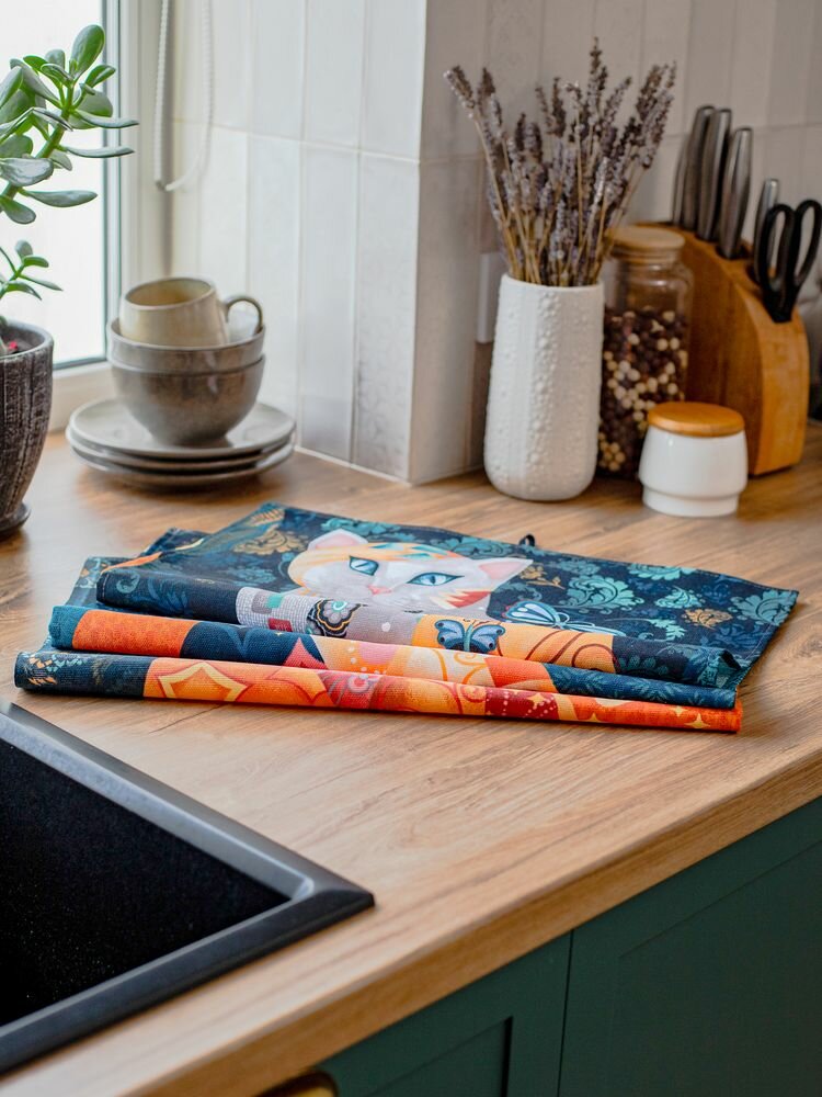 Комплект полотенец 48*60 см, 3 шт, рогожка (Котики)
