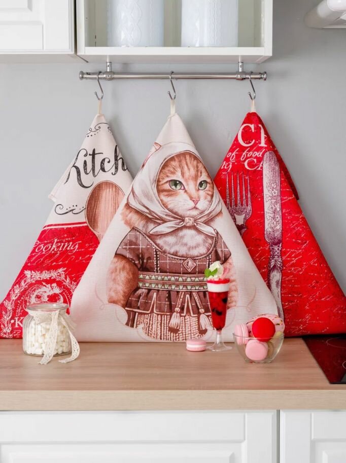 Комплект полотенец 48*60 см, 3 шт, рогожка (Котики)