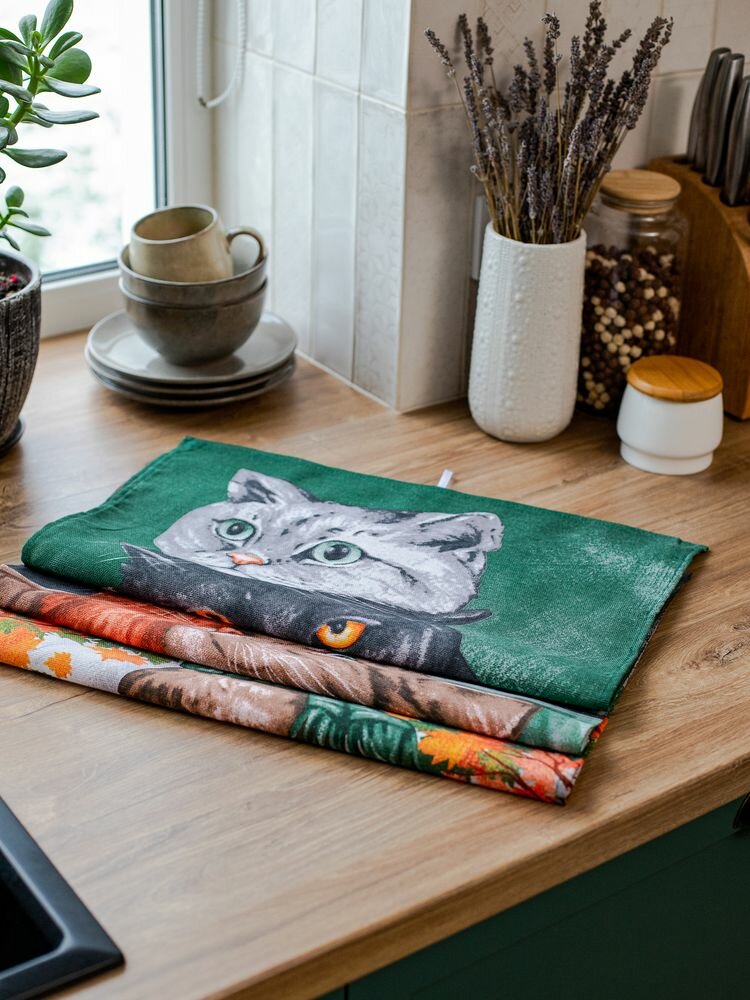 Купить Комплект полотенец 48*60 см, 3 шт, рогожка (Котики)