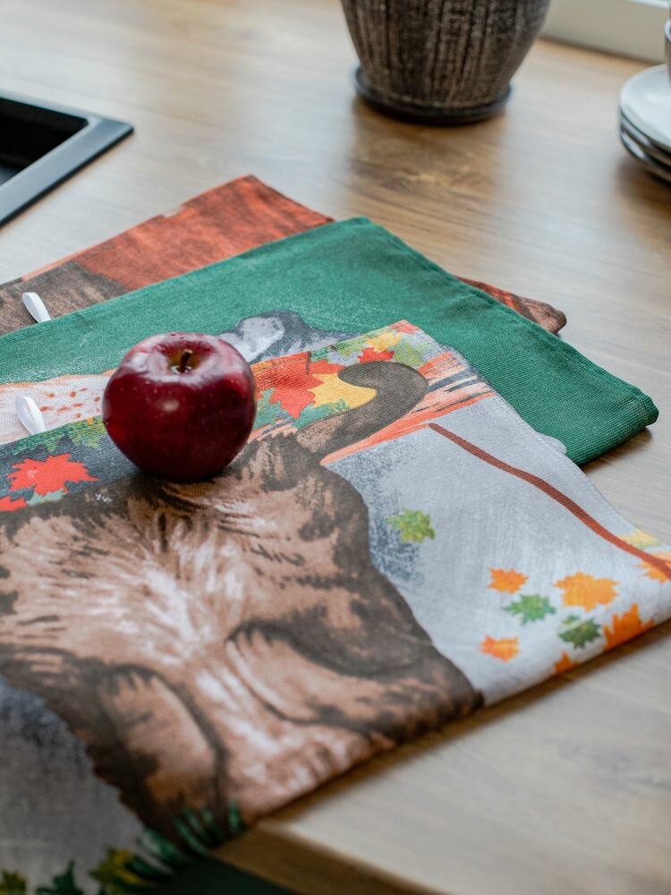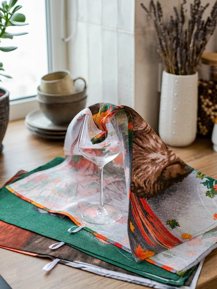 Комплект полотенец 48*60 см, 3 шт, рогожка (Лисы)