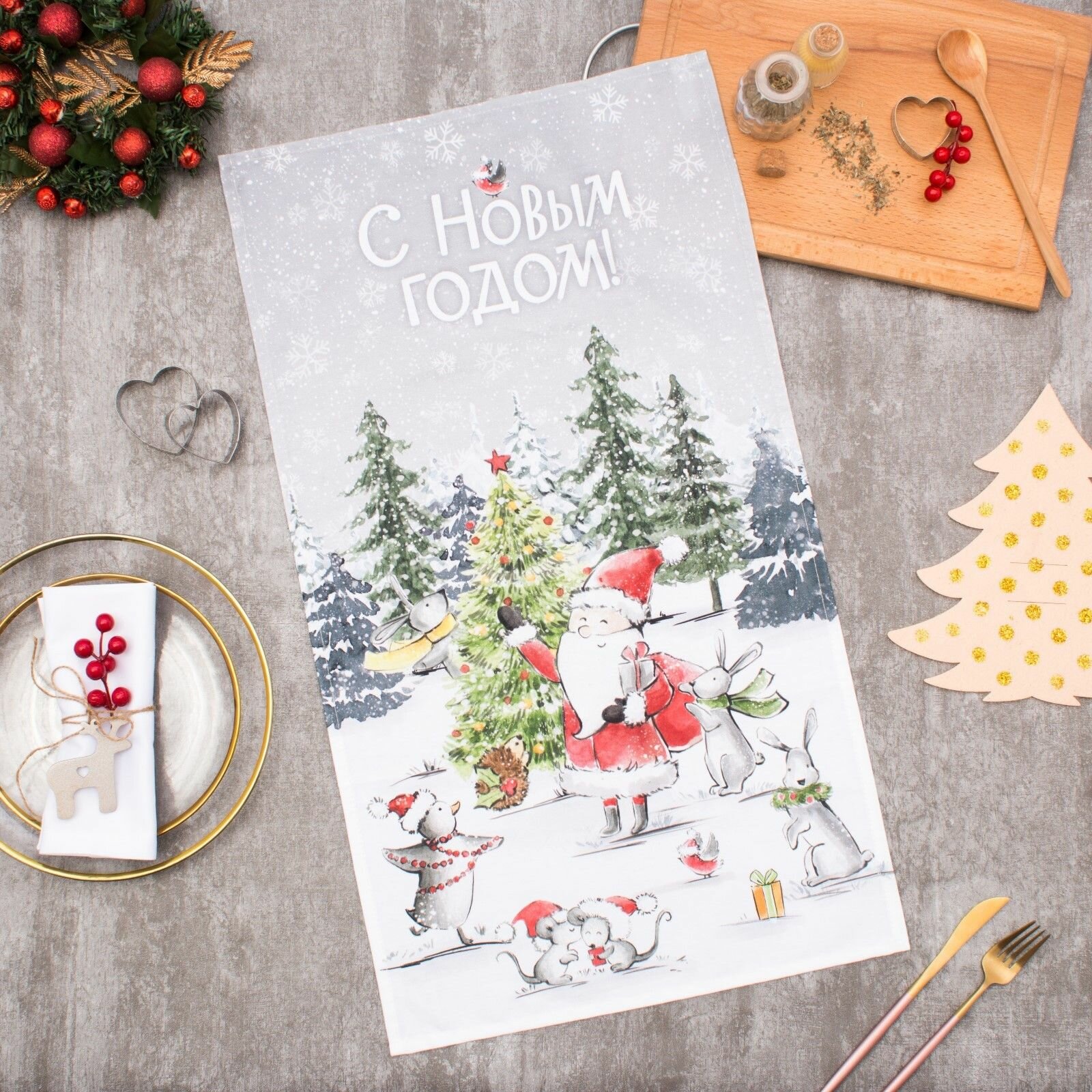 Купить Полотенце кухонное 40х70, Этель "Подарки от дедушки" цвет серый, 100% хлопок