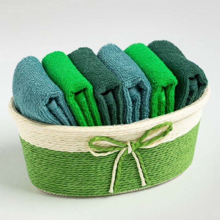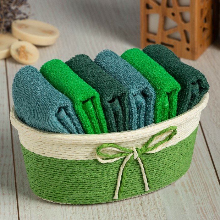 Купить Набор махровых декоративных салфеток Этель, 30х30см-6шт, цвет зелёный, 100% хлопок