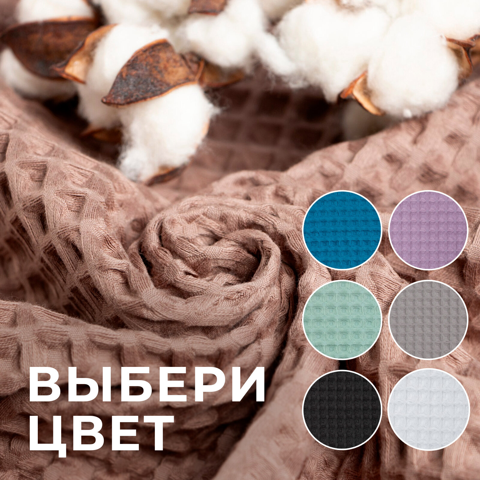 Полотенце вафельное банное Этель "Boho" 67х140 см, цвет мокко, 100% хлопок, 290 гр/м2