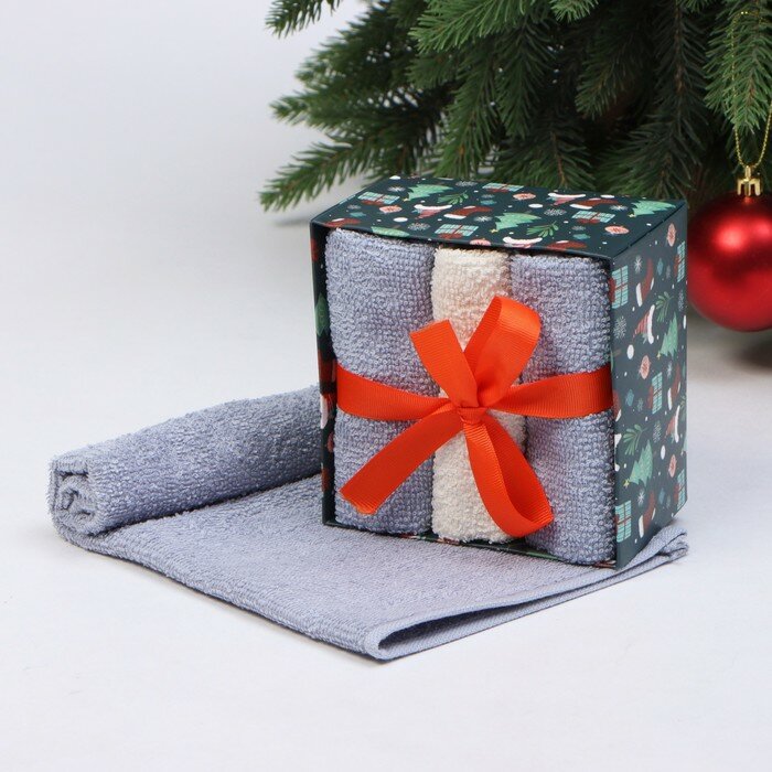 Купить Подарочный набор Этель - Новогодние забавы, 3 махровых полотенца 30х30 см, 1 упаковка