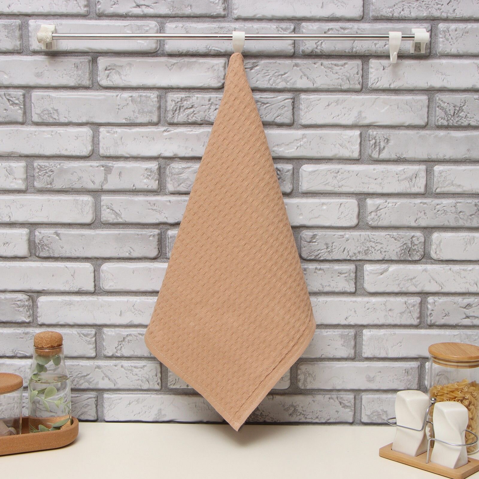 Купить Полотенце "Доляна" цв. коричнево-серый 35х60 см, 100% хл, крупная вафля 220 г/м2