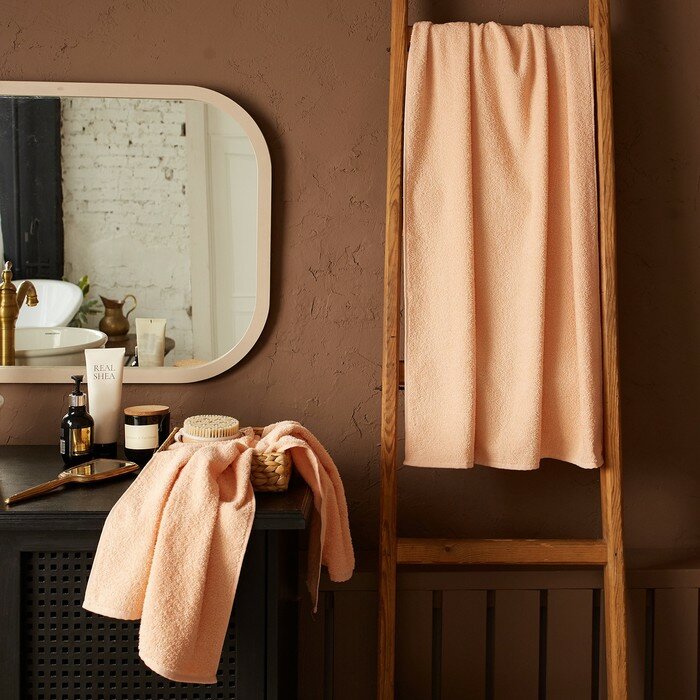 Полотенце махровое Экономь и Я 70х140 см, цвет персиковый мокко, 100% хлопок, 350 гр/м2, 7527728