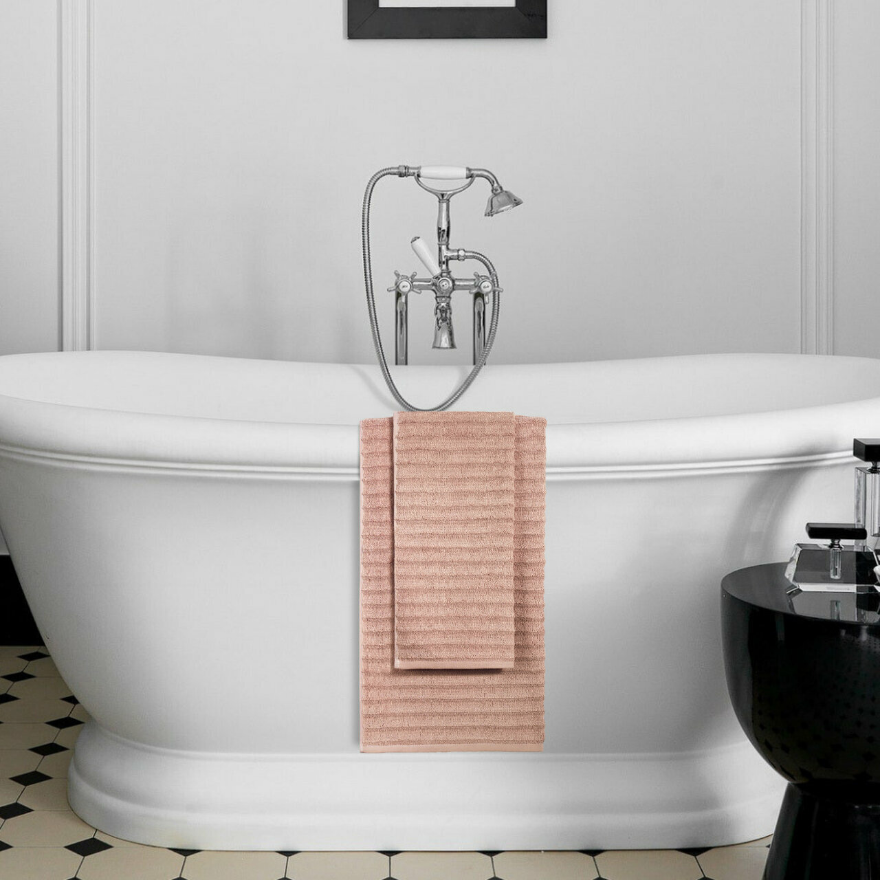 Полотенце махровое банное Ecotex "Волна" 70x140, цвет пудровый