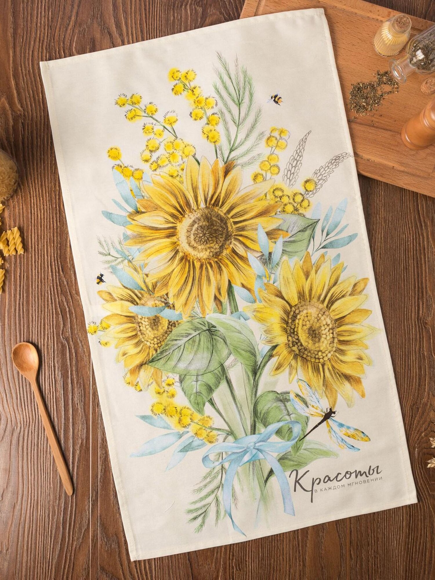 Купить Полотенце кухонное 40х73, Этель "Солнечные цветы" цвет жёлтый, 100% хлопок