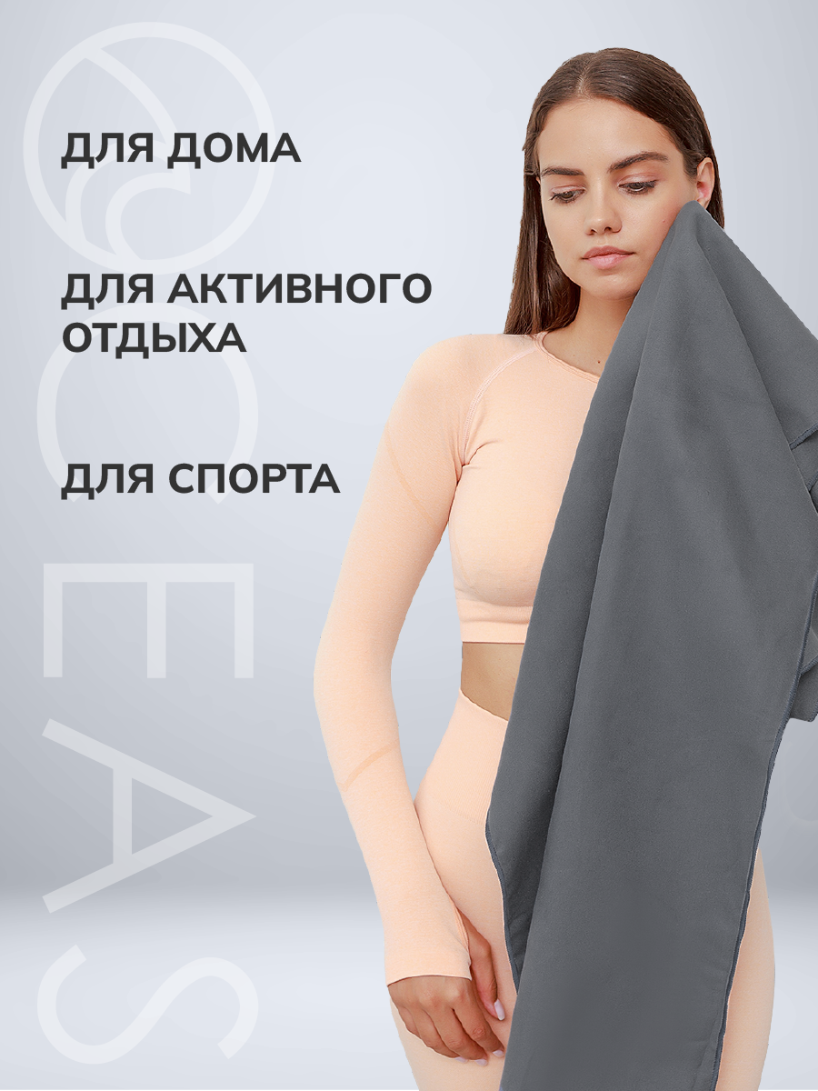 Спортивное полотенце OCEAS быстросохнущее из микрофибры, для зала и басейна, 120х50 см, тёмно-серый интересное: