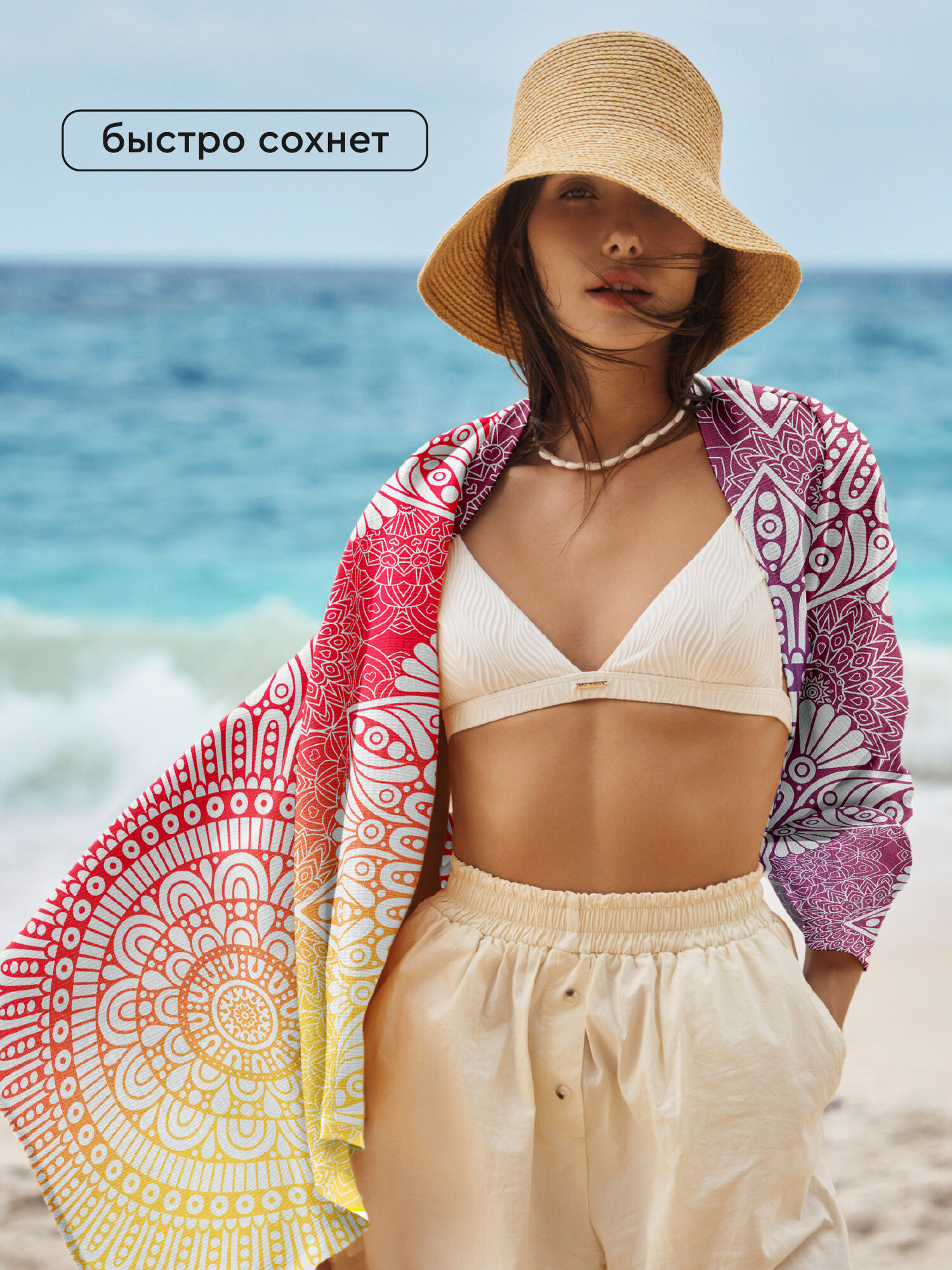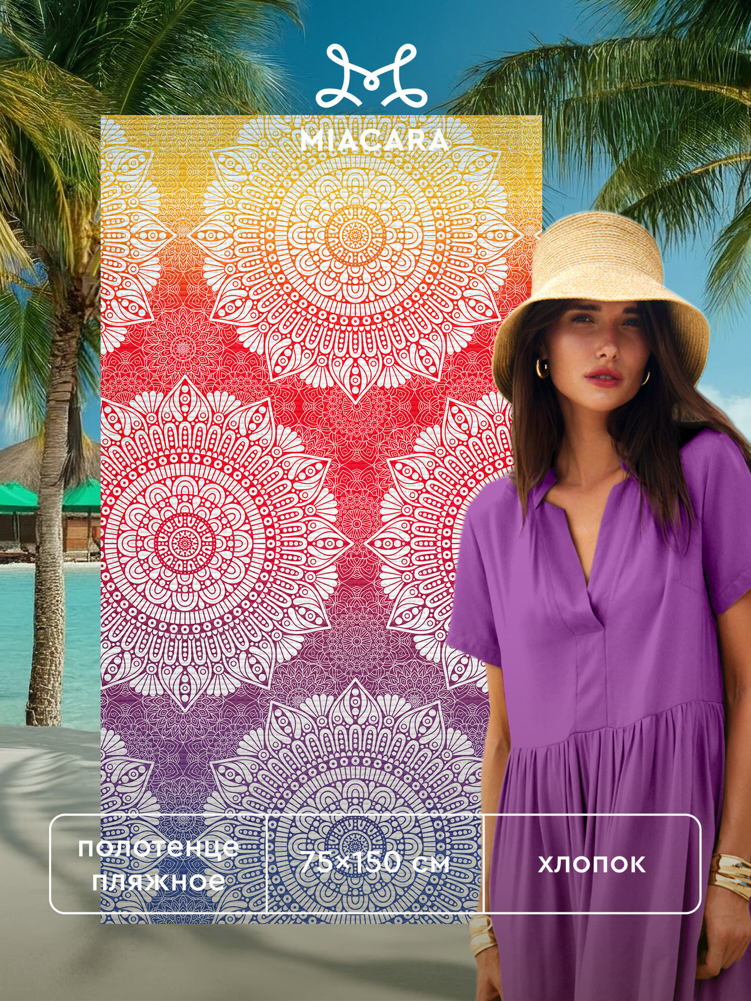 Купить Полотенце пляжное вафельное 75х150 "Mia Cara" рис 30724-1 Mandala