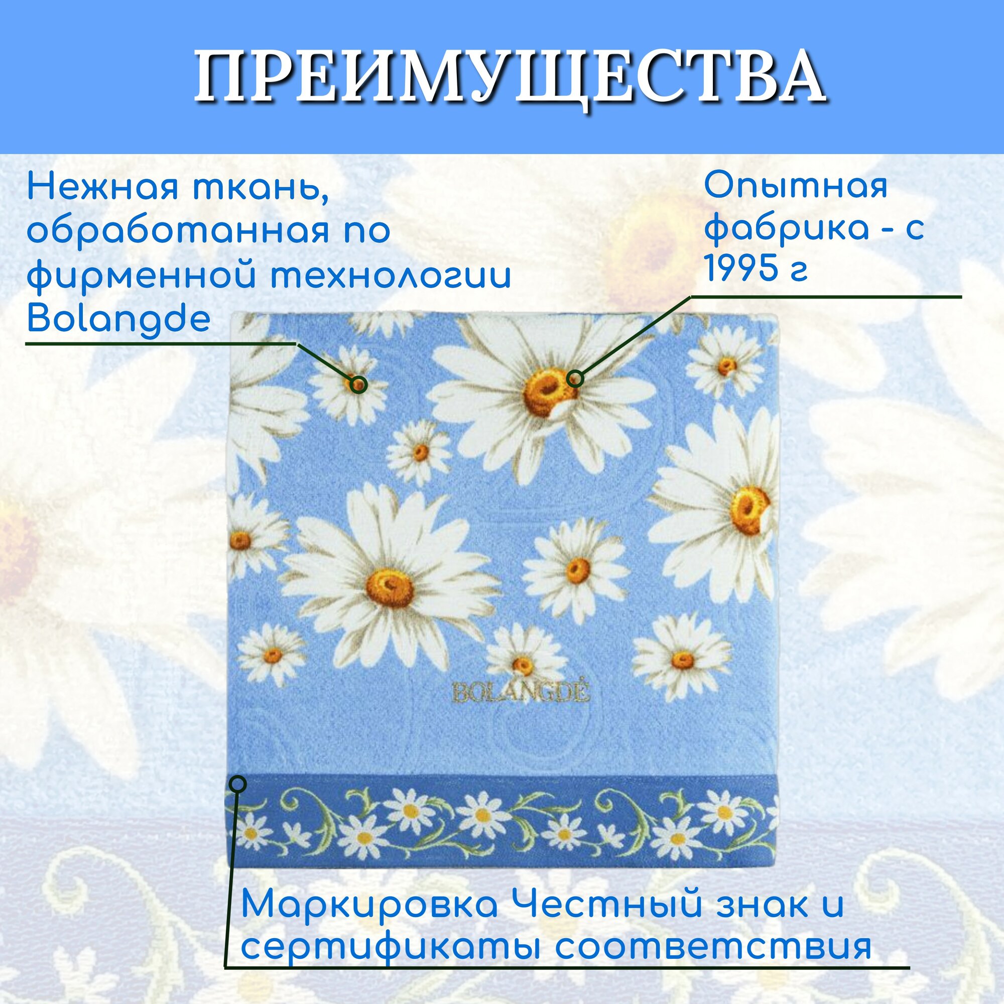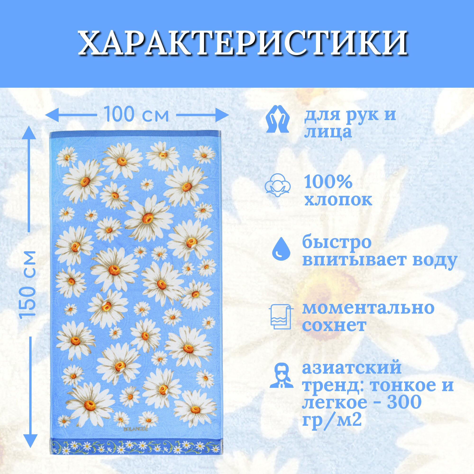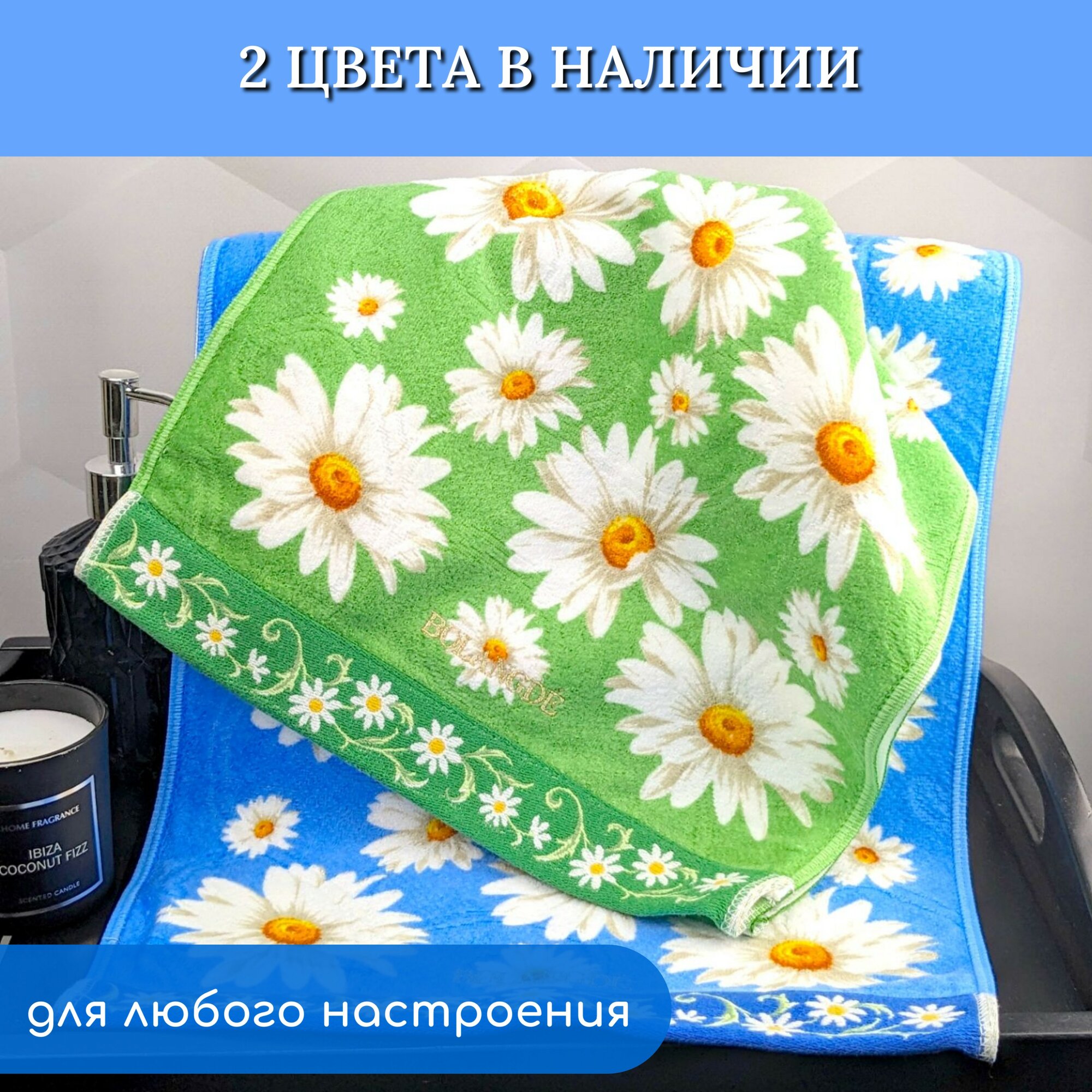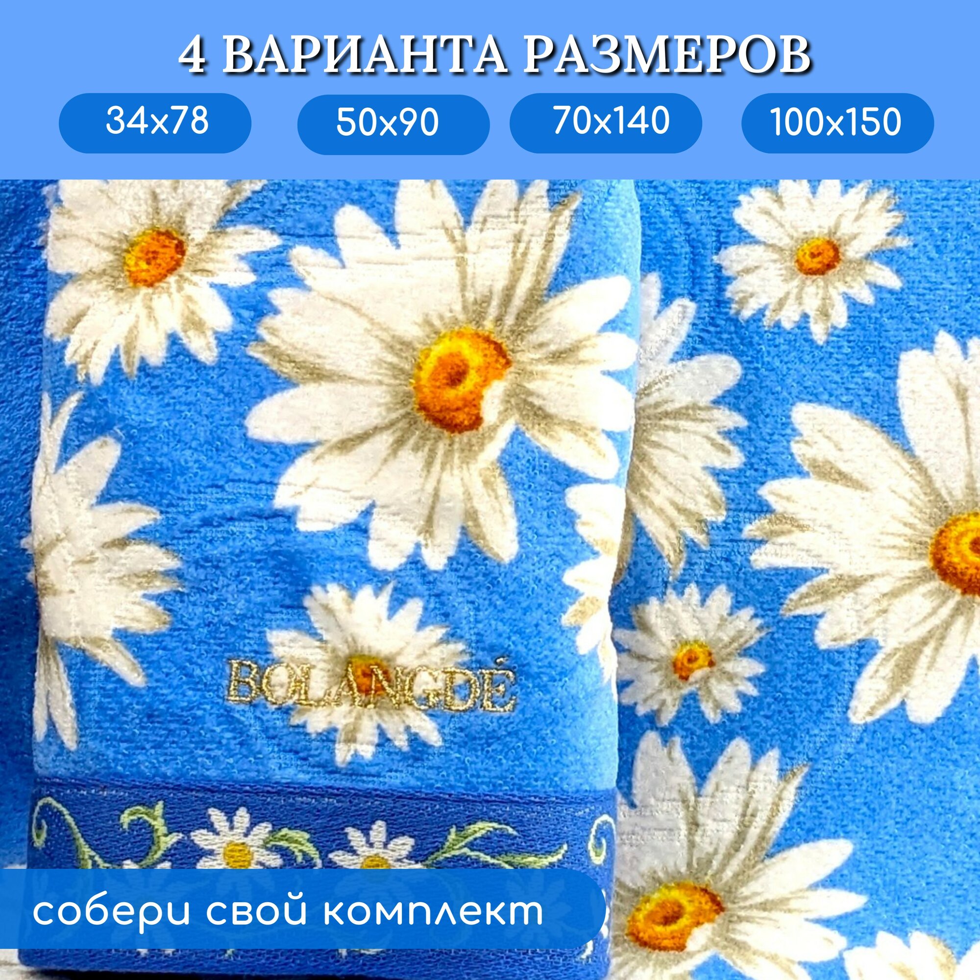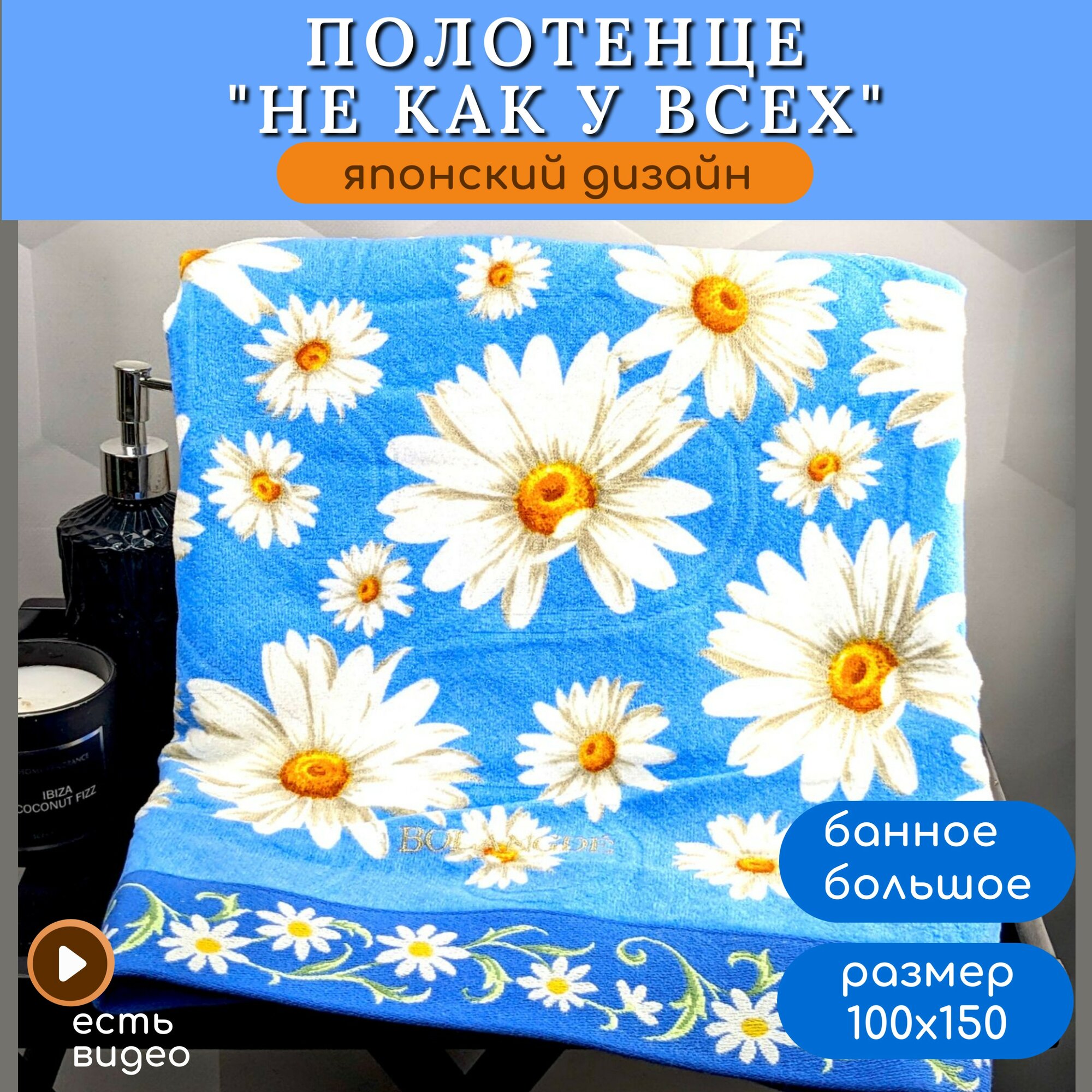 СохранитьПолотенце банное махровое для ванны, для сауны, для детей и взрослых, для семьи BOLANGDE Япония Ромашки, синий, размер 100х150 интересное: