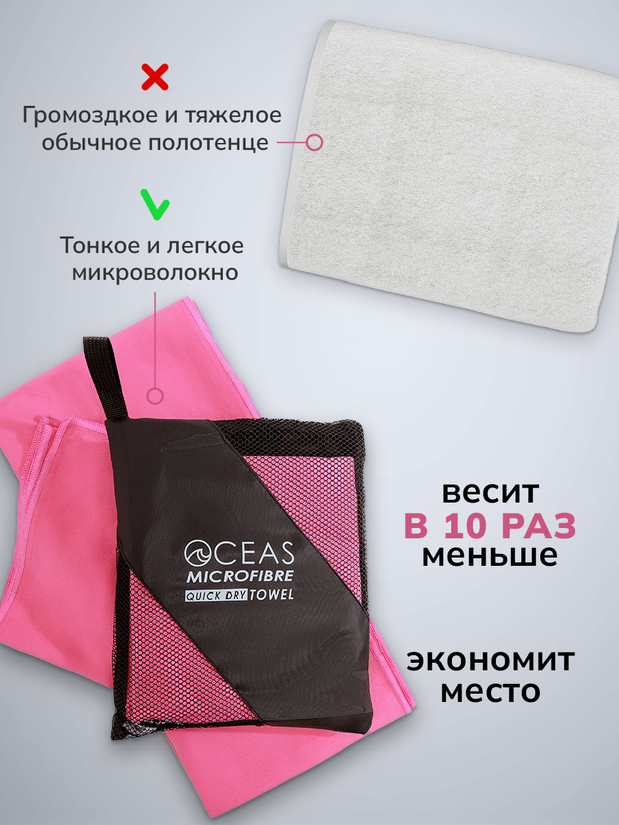 СохранитьПолотенце спортивное OCEAS из микрофибры , быстросохнущее для фитнеса и йоги, 150х75 см, розовый интересное: