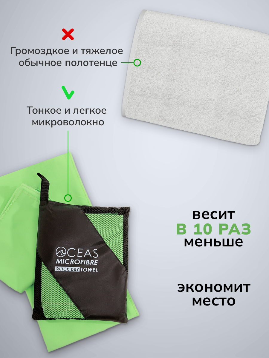СохранитьПолотенце спортивное OCEAS из микрофибры , быстросохнущее для фитнеса и йоги, 150х75 см, салатовый интересное:
