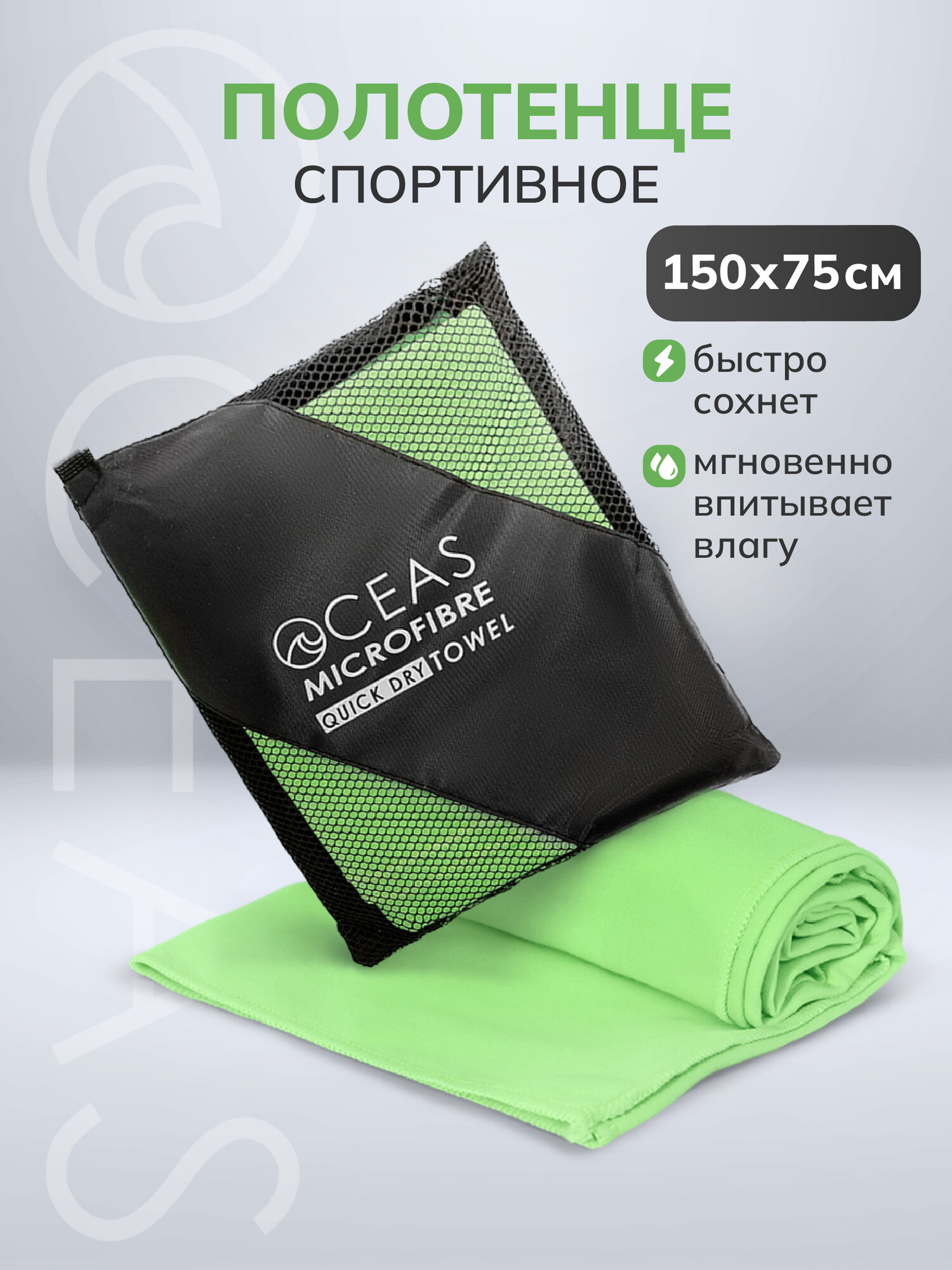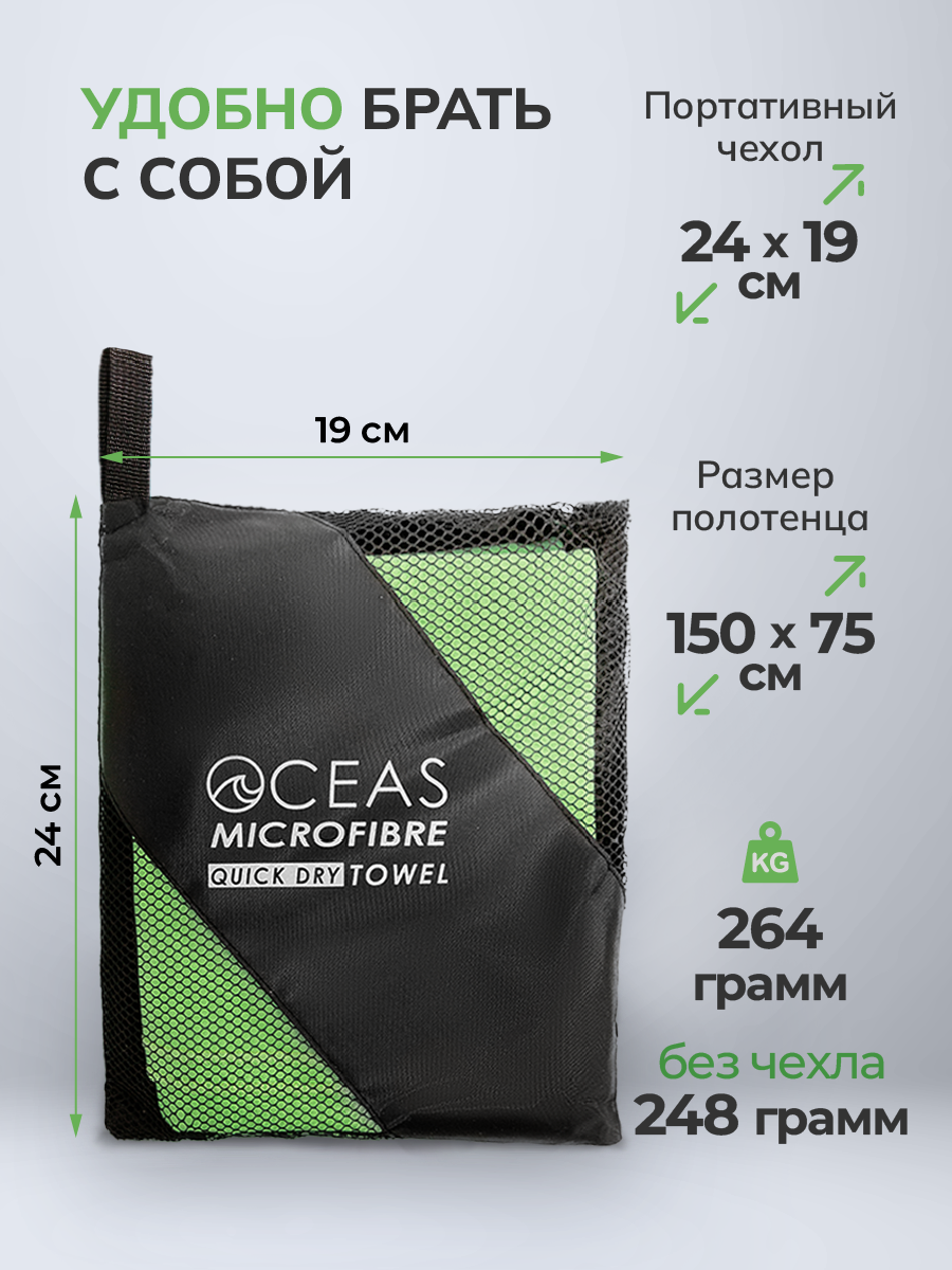 Купить Полотенце спортивное OCEAS из микрофибры , быстросохнущее для фитнеса и йоги, 150х75 см, салатовый