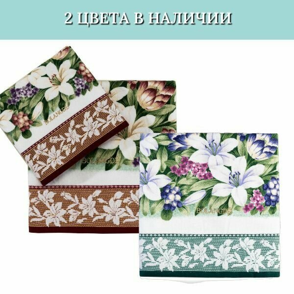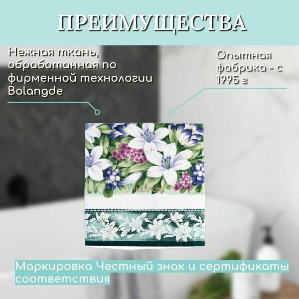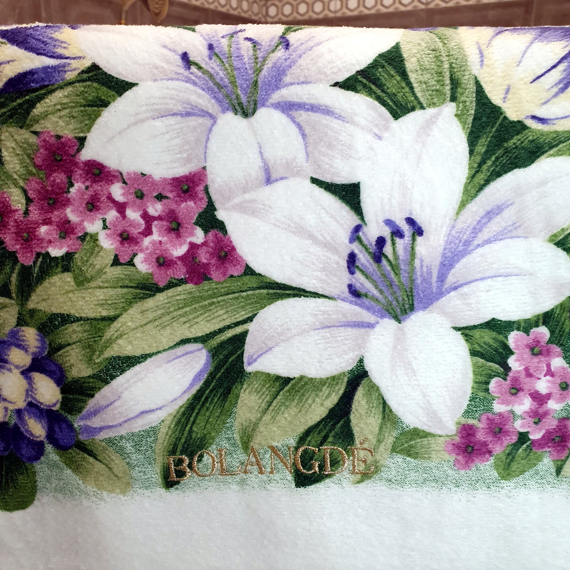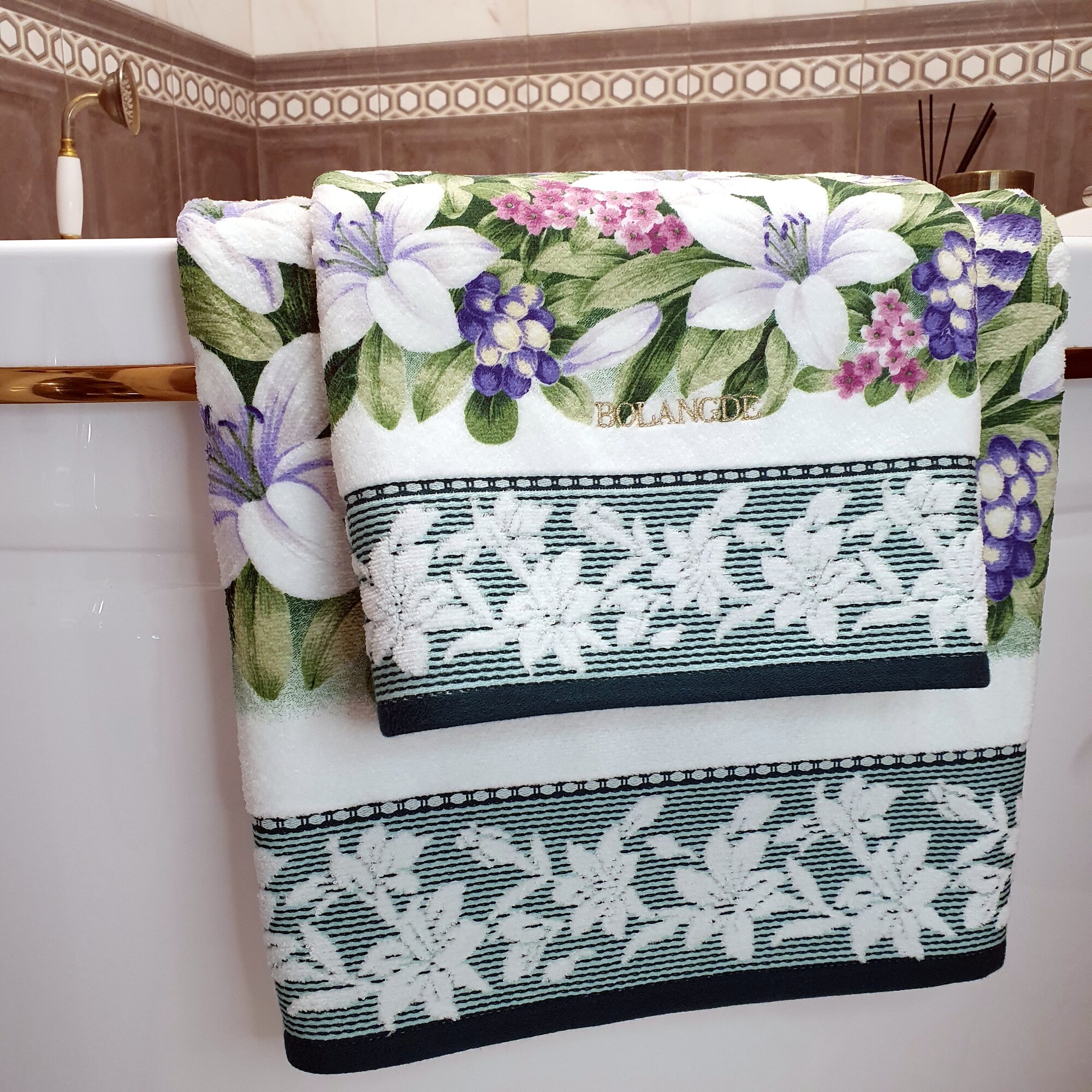 Полотенце для ванной большое банное Bolangde, Лилия Япония, 100x150 см, бело-зеленое интересное: