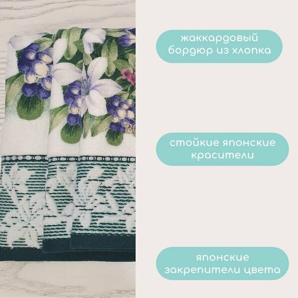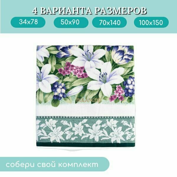 Махровое полотенце из 1 шт. 34х78 для лица/рук, хлопок 100%, лилия, Япония 2019А-34х78-белый/зеленый