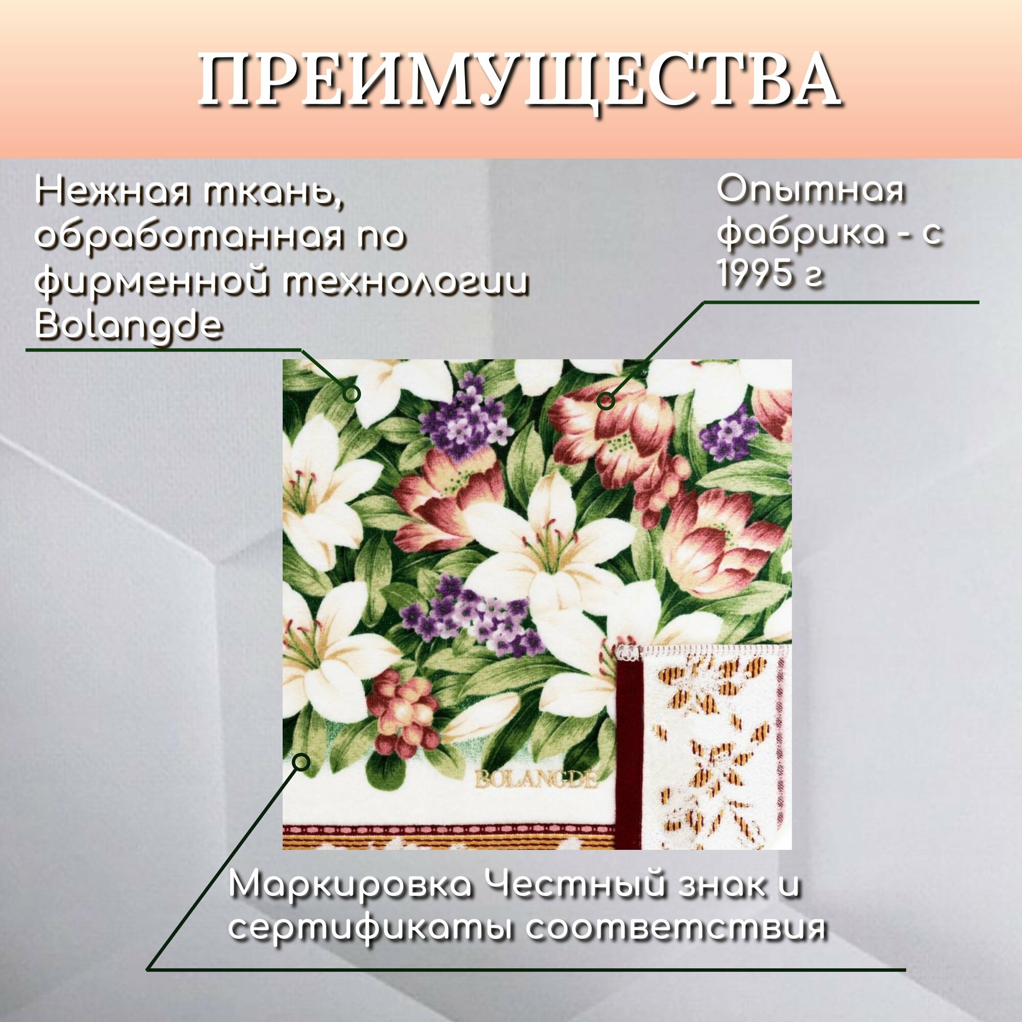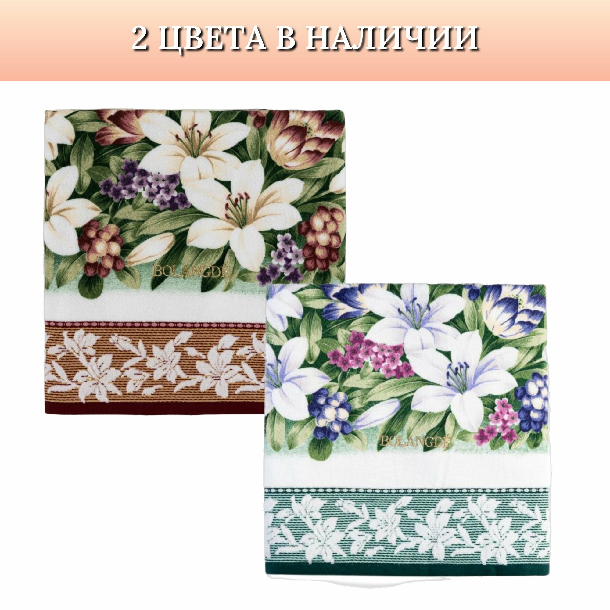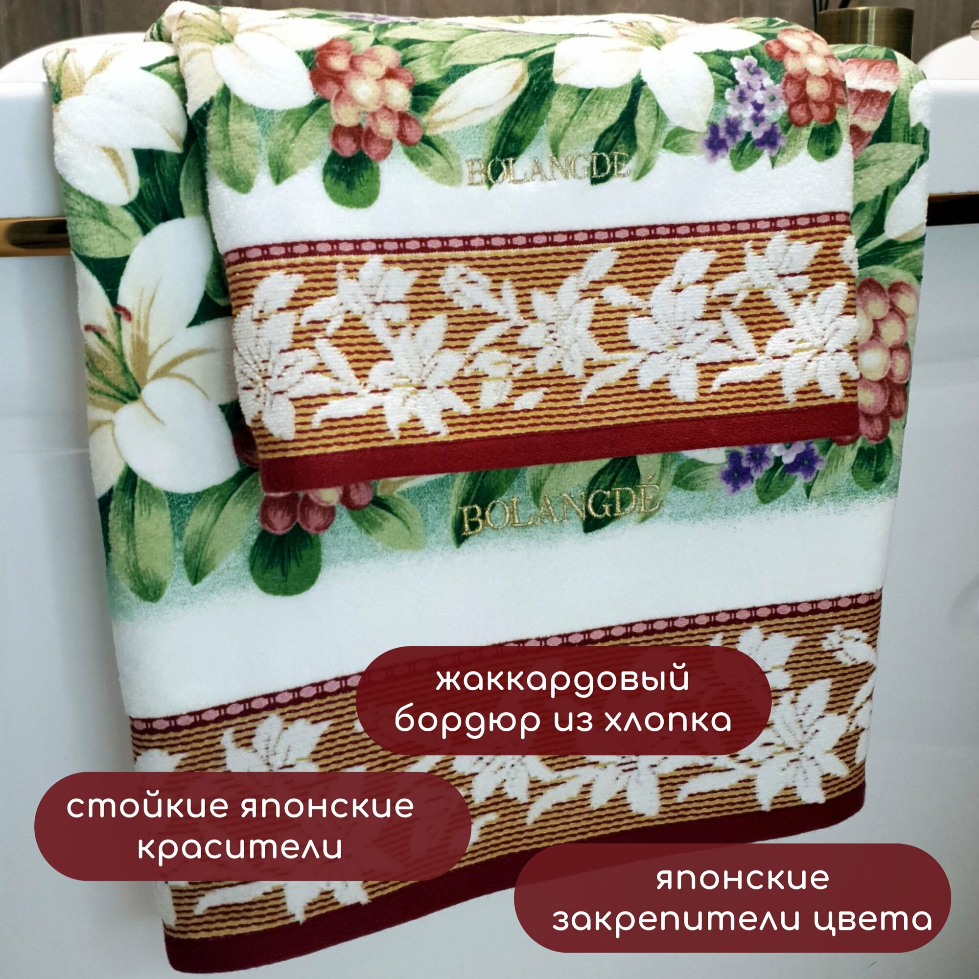 Полотенце для ванной большое банное Bolangde, Лилия Япония, 100x150 см, бело-зеленое