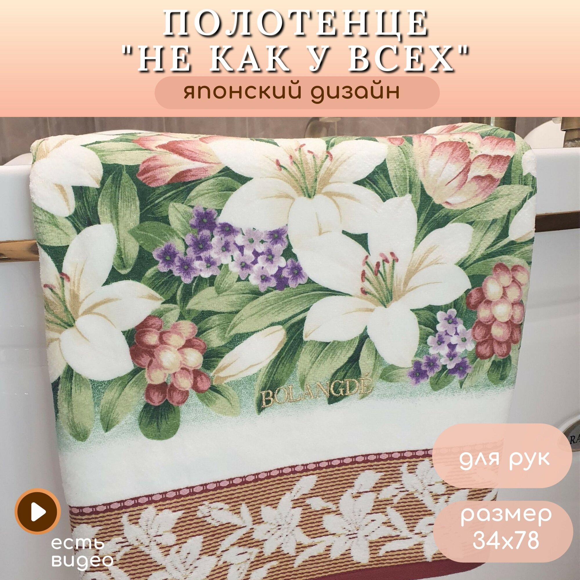 Махровое полотенце из 1 шт. 34х78 для лица/рук, хлопок 100%, лилия, Япония 2019-34х78А-красный интересное: