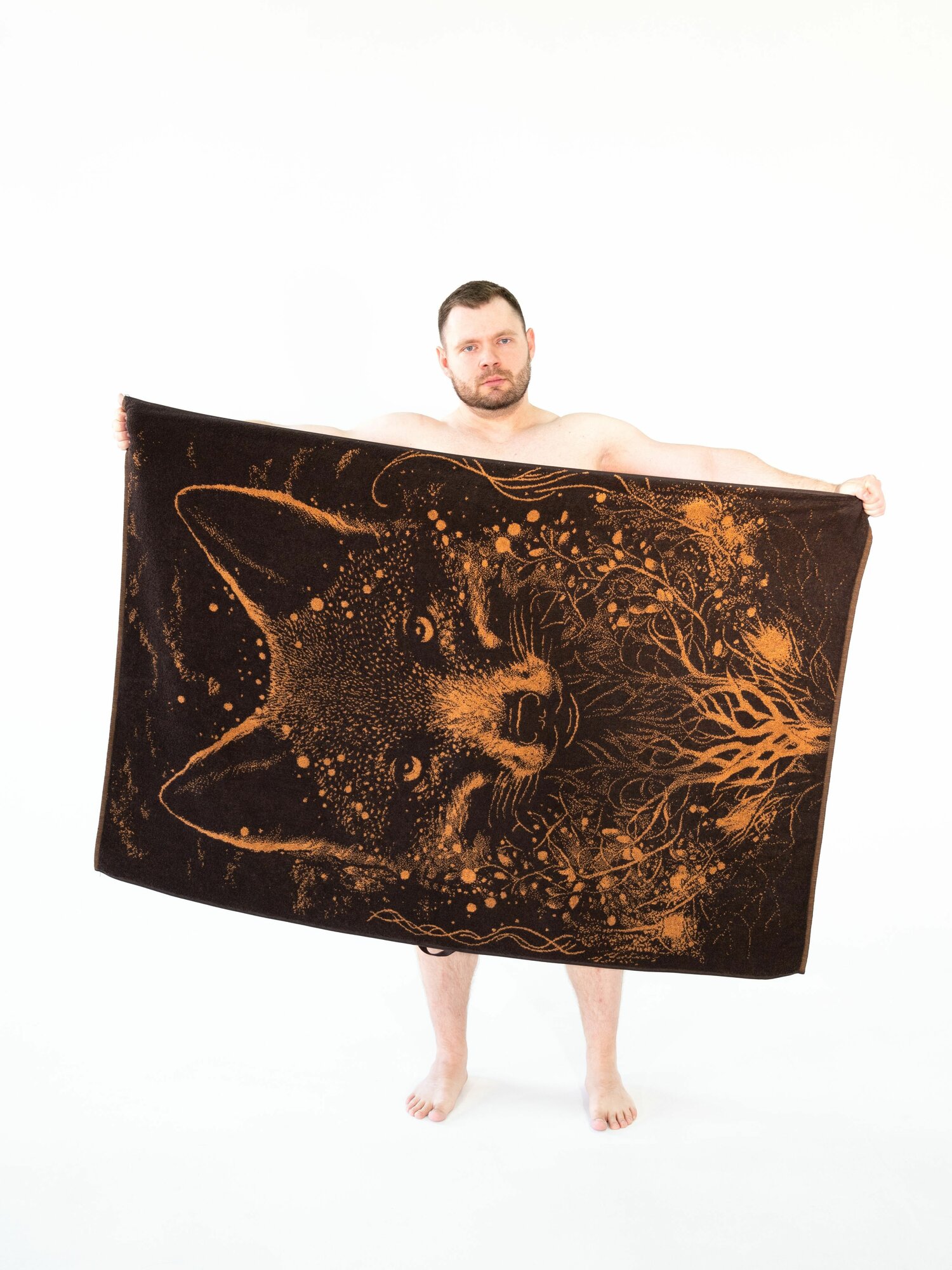 Полотенце подарочное банное Лиса 100х150 с петелькой интересное: