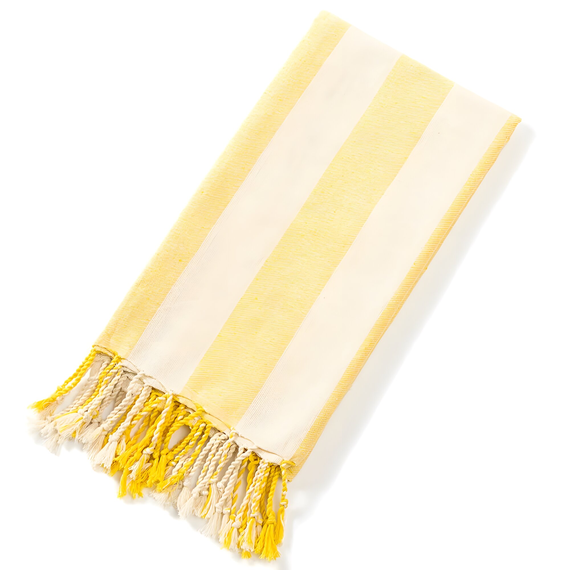 Купить Турецкое пляжное полотенце из мягкого хлопка в полоску с кисточками , цвет желтый 100x180 см