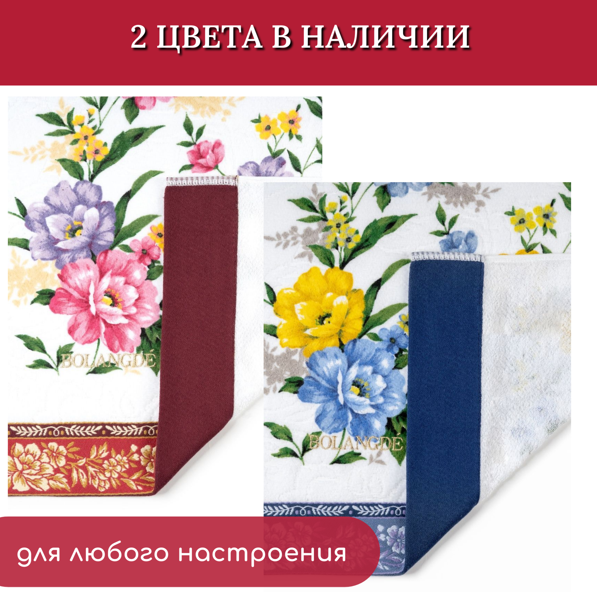 Полотенце для рук и лица 1 шт, полотенце для ванной махровое, велюровое BOLANGDE, 100% хлопок, рисунок цветы, Япония Глория 34х78, синий