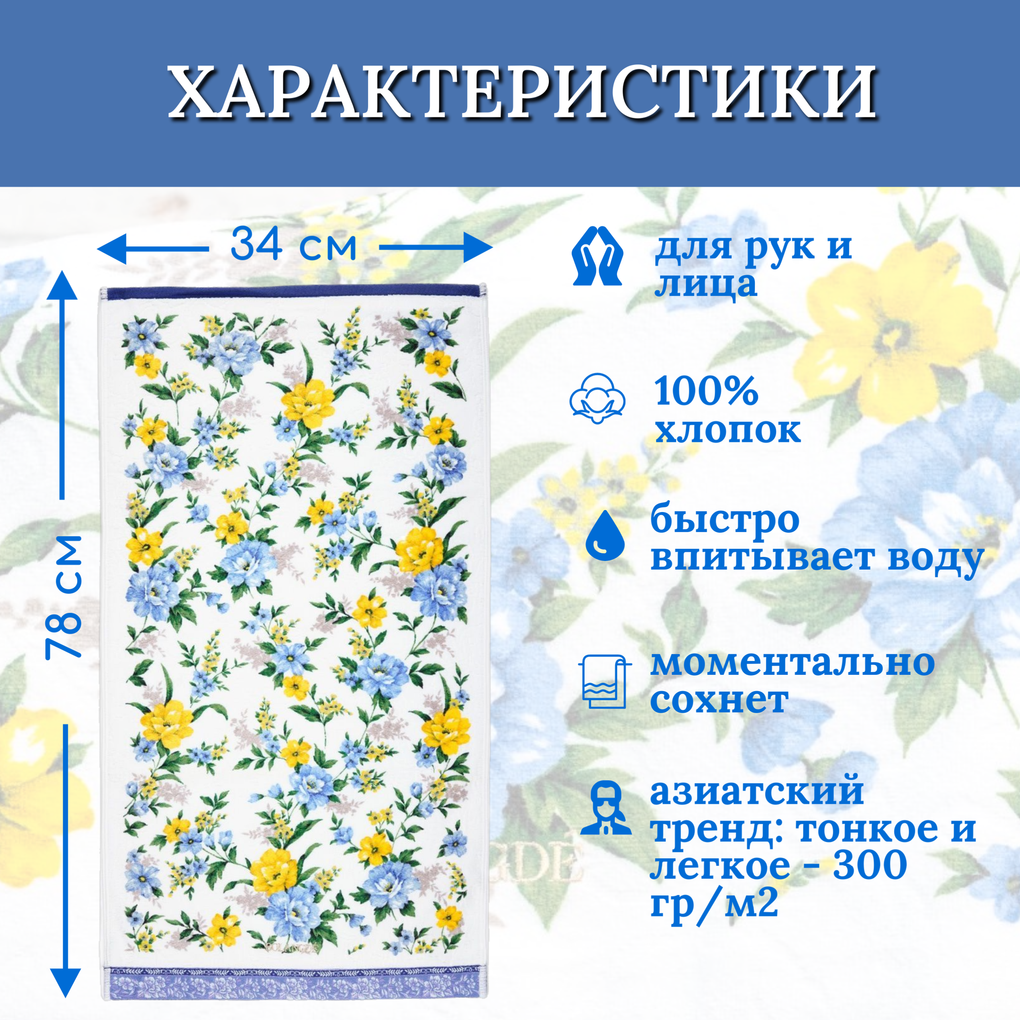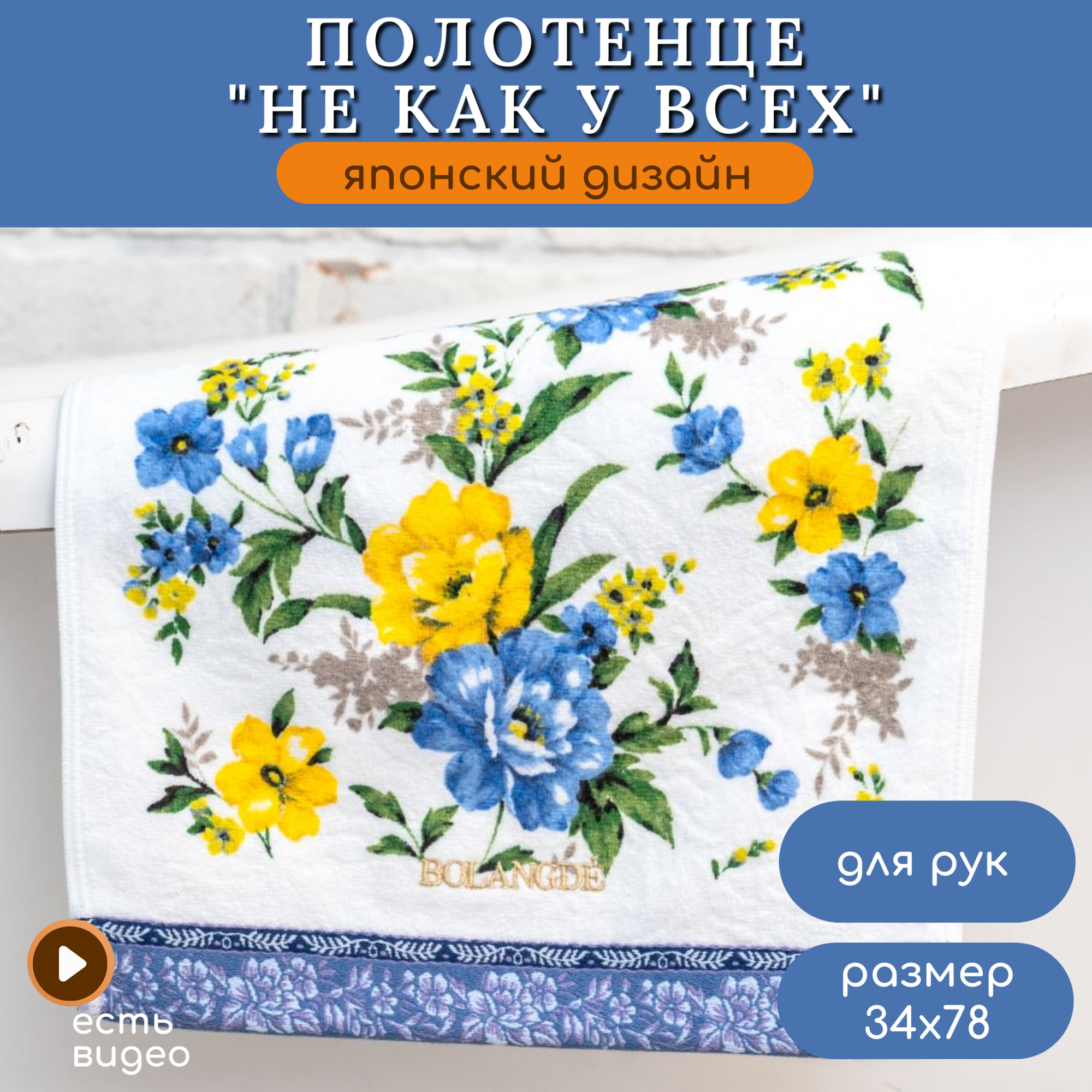 СохранитьПолотенце для рук и лица 1 шт, полотенце для ванной махровое, велюровое BOLANGDE, 100% хлопок, рисунок цветы, Япония Глория 34х78, синий интересное: