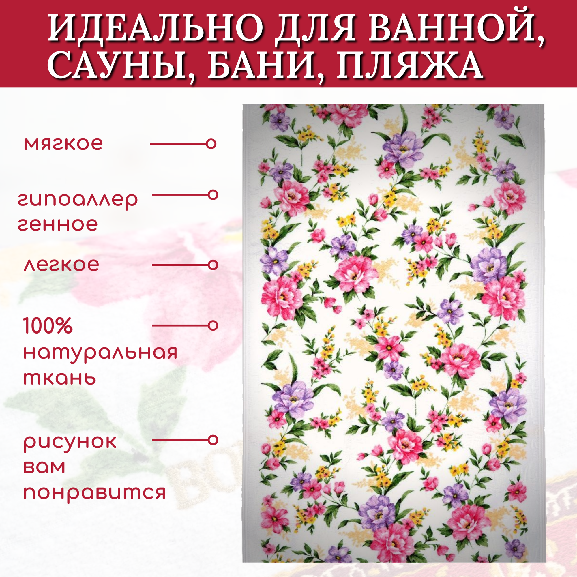 Полотенце для рук и лица 1 шт, полотенце для ванной махровое, велюровое BOLANGDE, 100% хлопок, рисунок цветы, Япония Глория 34х78, красный
