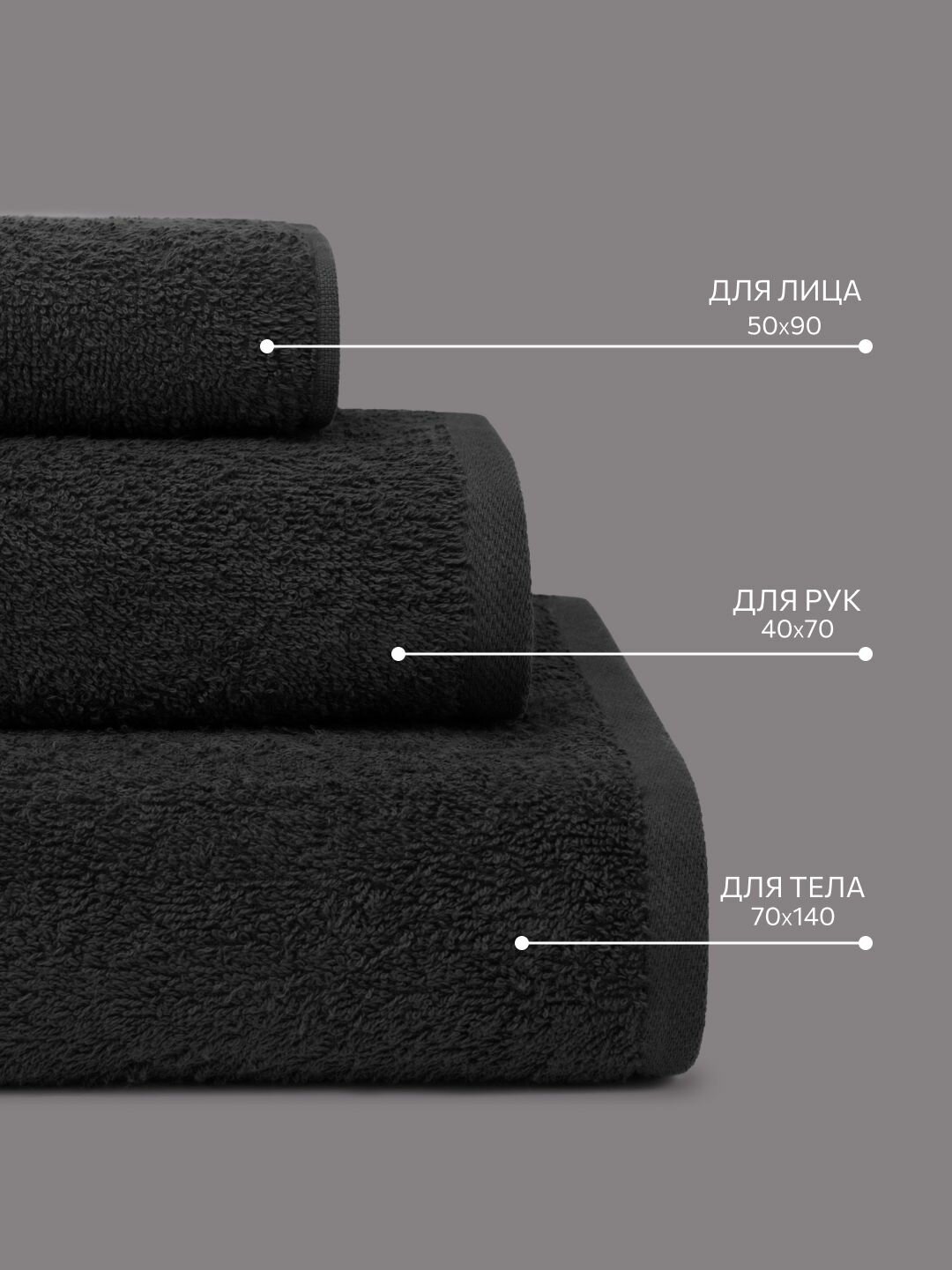 Купить Набор полотенец махровых, Guten Morgen Черный, 3 шт, 40х70, 50х90, 70х140, хлопок 100% 400 г/м2